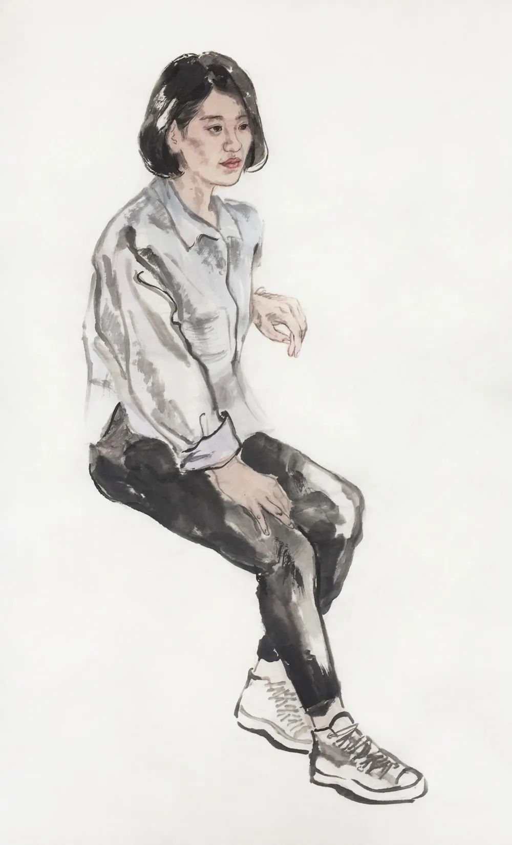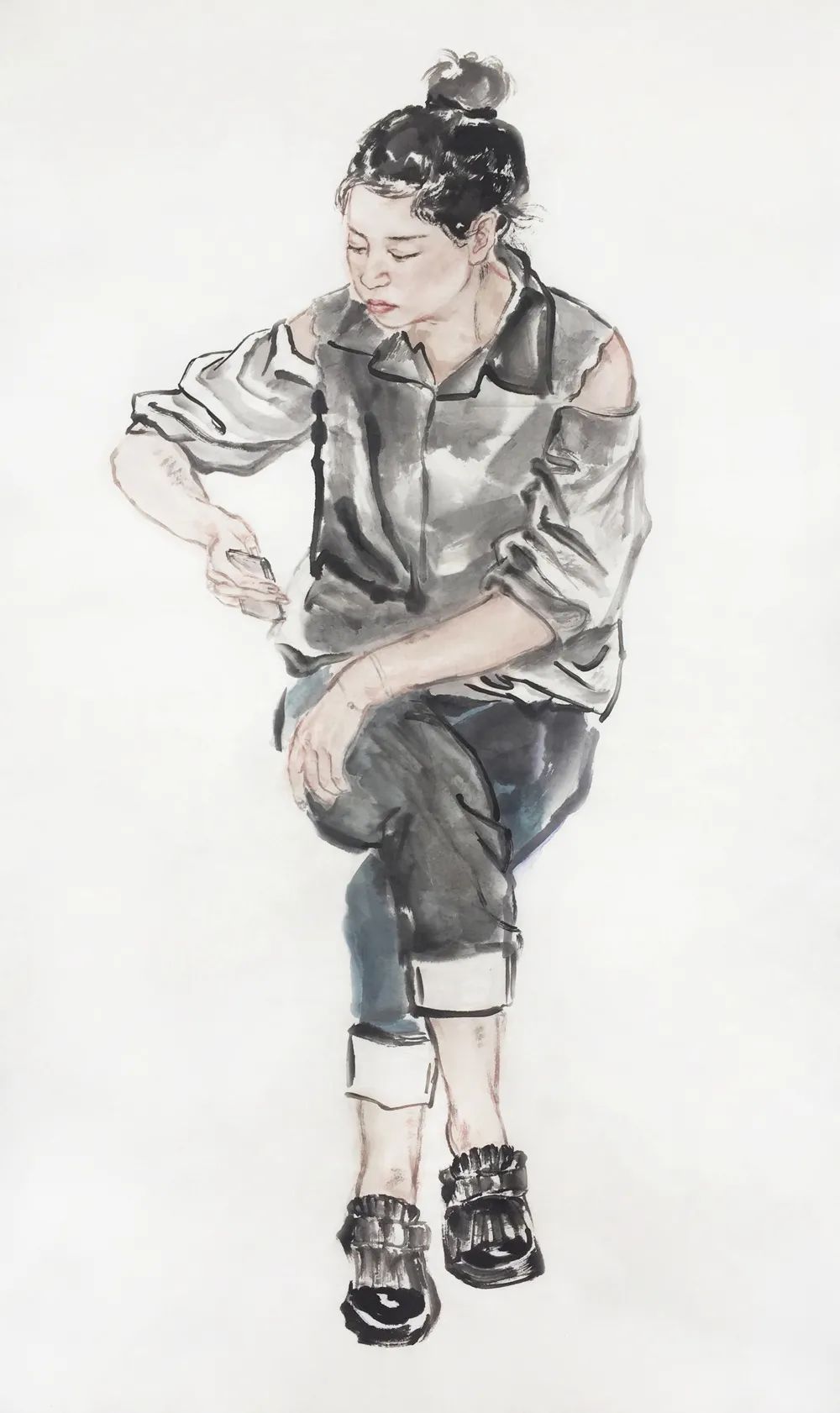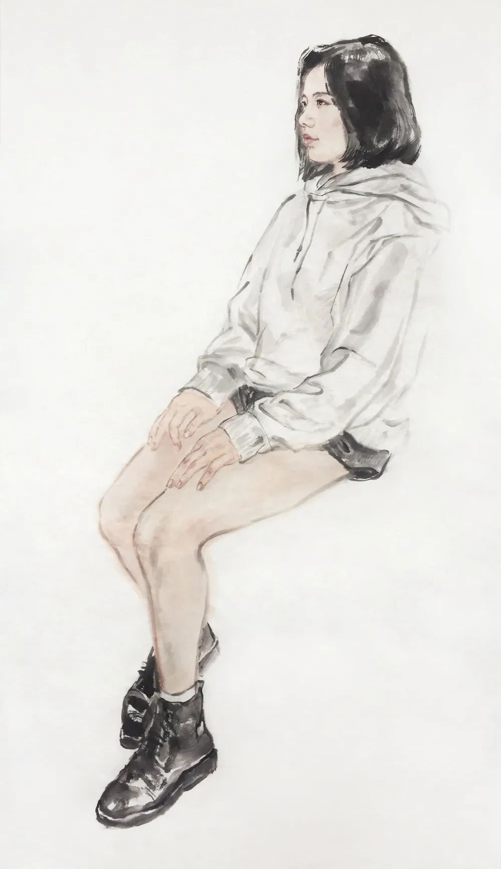 绘画过程难以避免脑洞大开,揣测画中人物的心情心事,被画中人牵着走大抵是多数画者比较忌讳的事情,对我却是不可剥夺的乐趣,只有在这个时刻,我是绝对自由的。敬畏造物主的恩赐,感知个体的冷暖,直至感知群体的情绪,再将这些泼向画纸,便是创作的动机以及全部过程。