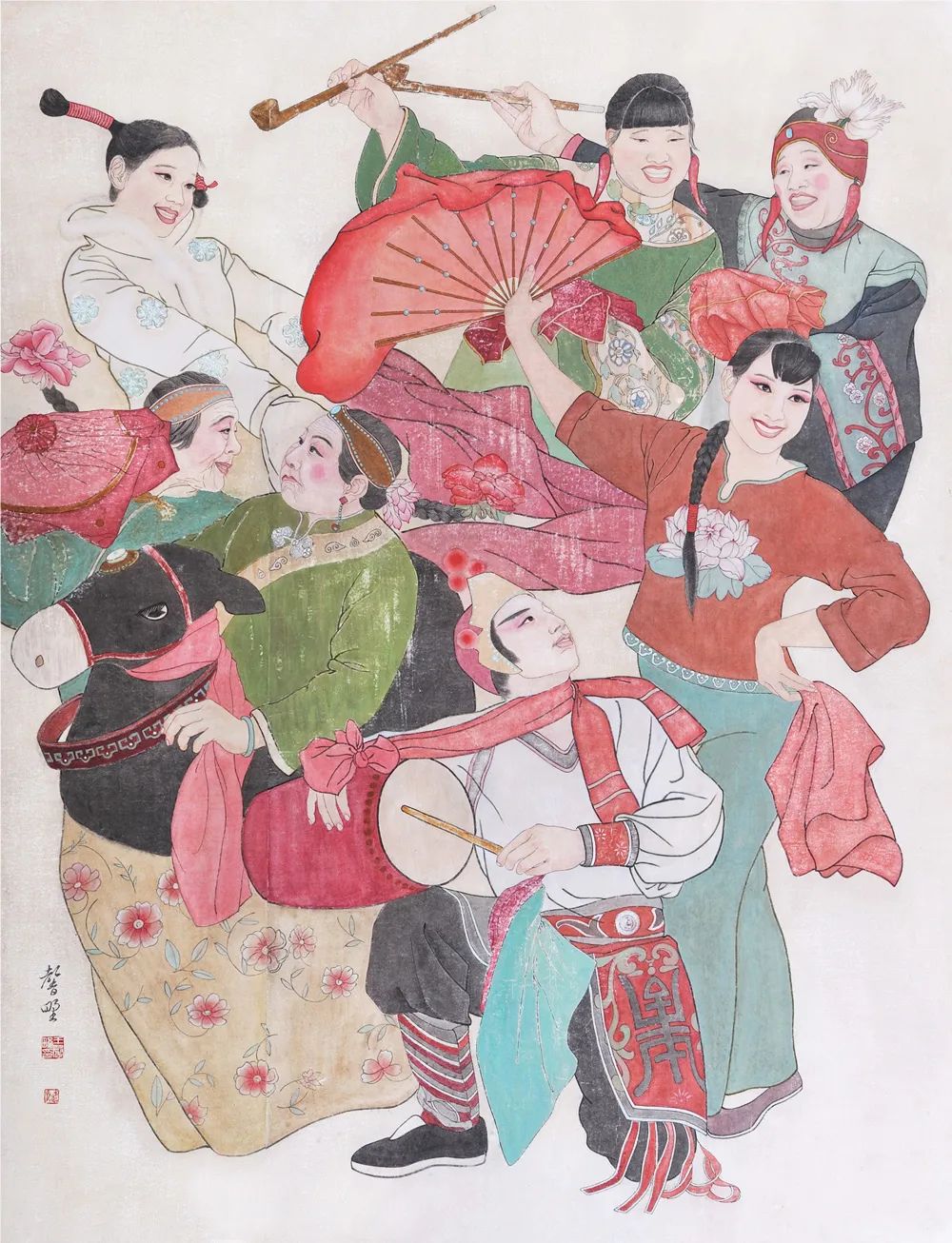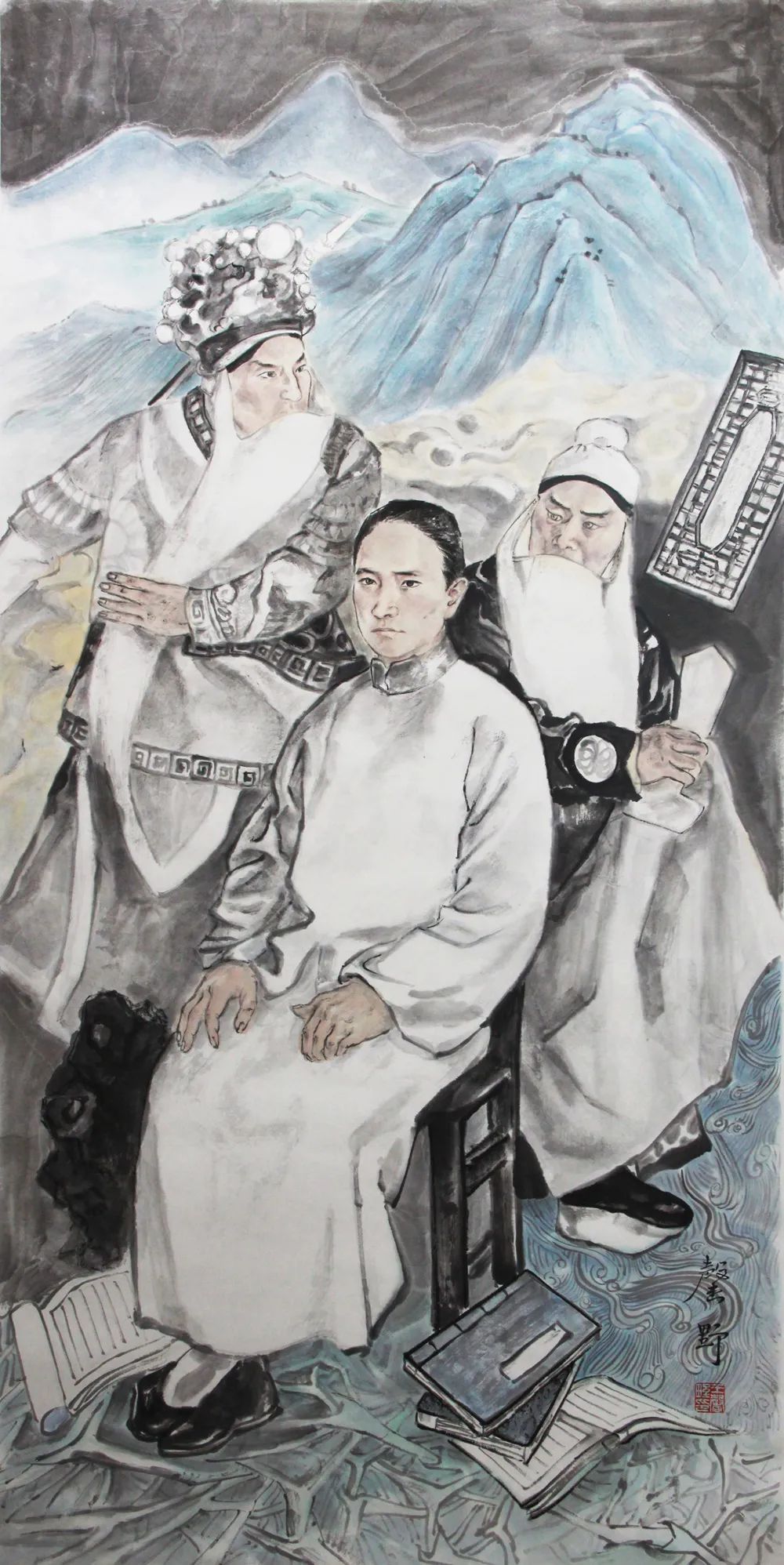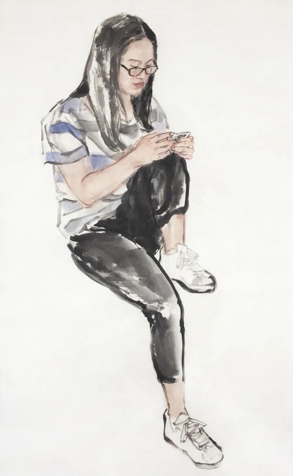 众人皆知画人物难,难在形与神,也难在传统与当代的转换。吾师常谈到,传统不是橡皮筋,无限拉长,传统是锁链,一环扣一环。浙派绘画讲究传承,师承关系很重要,而我们师兄弟中却鲜有与老师画风类似,外人看来表面上风格迥异,实质在造型和构思上却深受老师影响,尤其是对于结构的较真以及画中人物呼应关系的布局。人物画队伍实在庞大,浙派只是一个分支,而我的作品仅仅微观地呈现了浙派人物画中又一小分支中的踟躇发展。
