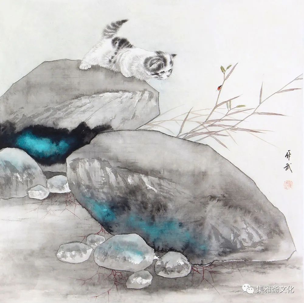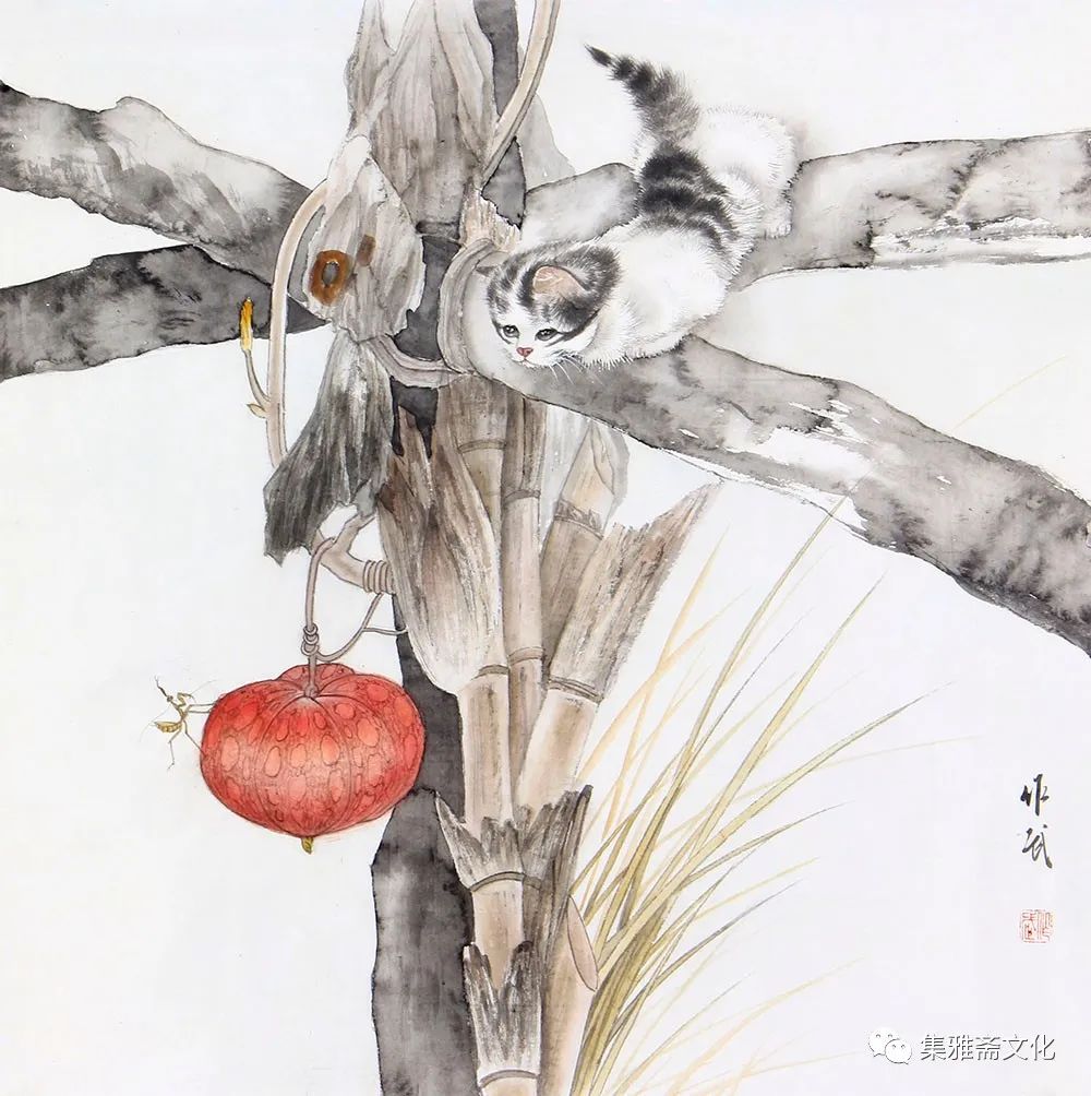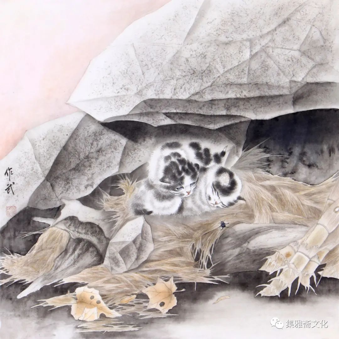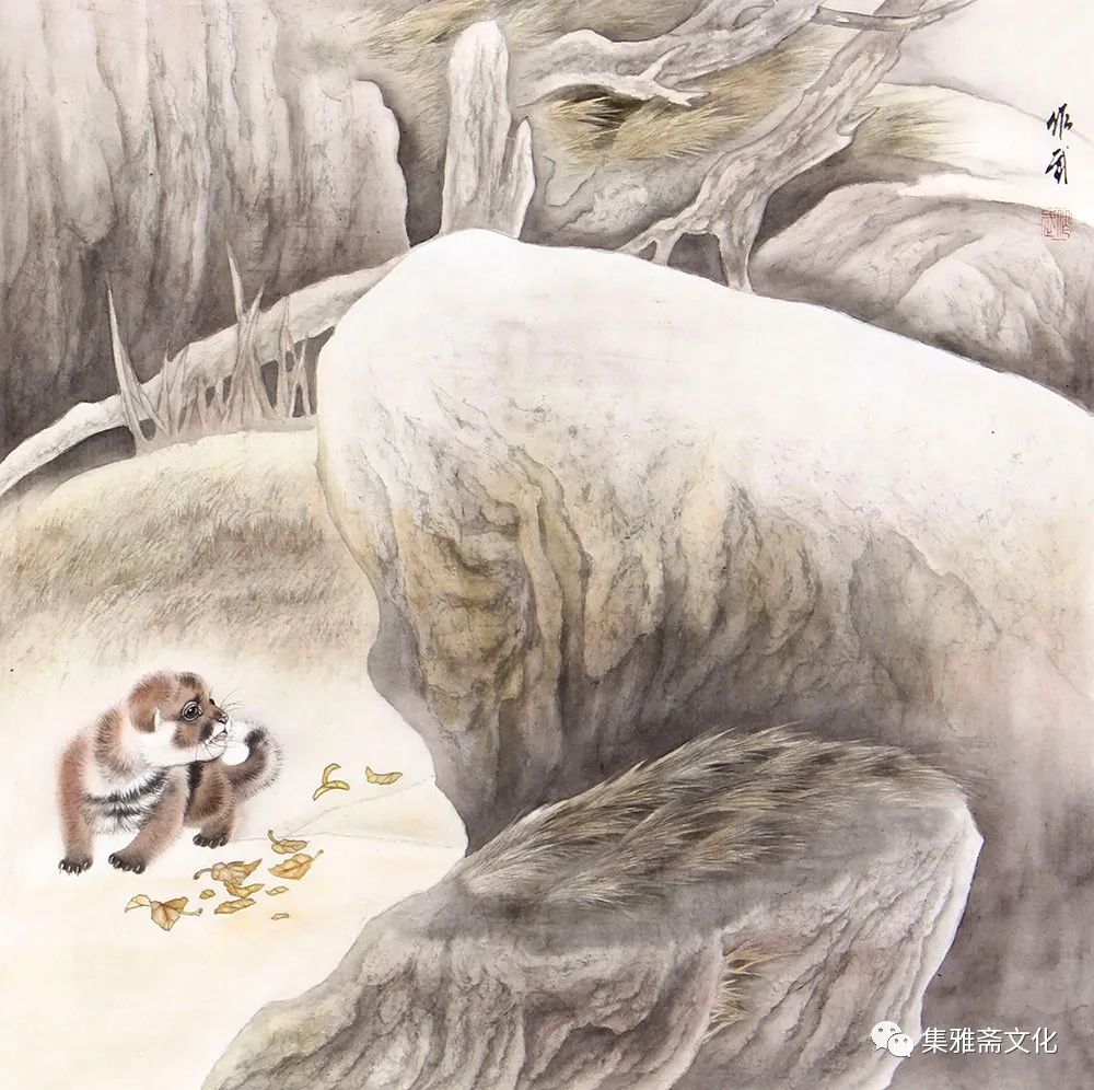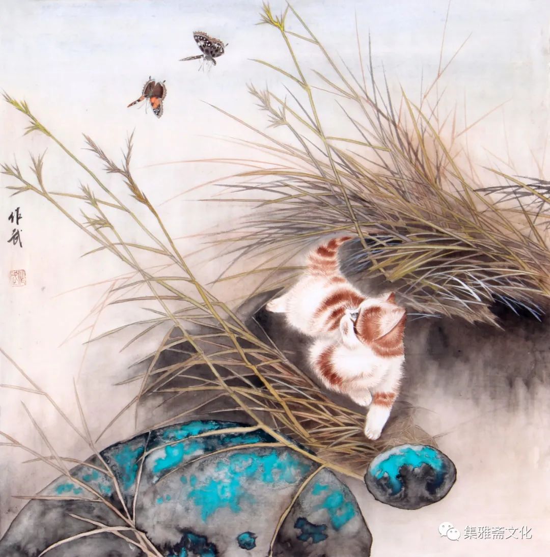 马作武主习工笔花鸟专业,花草鸟禽、枯石折枝、虫鱼走兽,样样信手拈来,而其中尤擅动物绘画。中国工笔花鸟画的传承创新,无不以五代两宋的诸家研习为主,往往给人承传有序,新意不足的感觉。