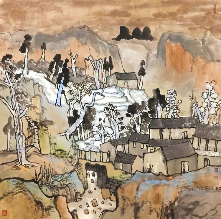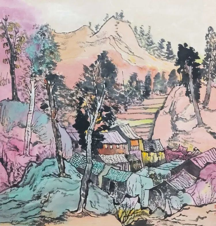 著名画家张跃玫彩墨山水画作品欣赏