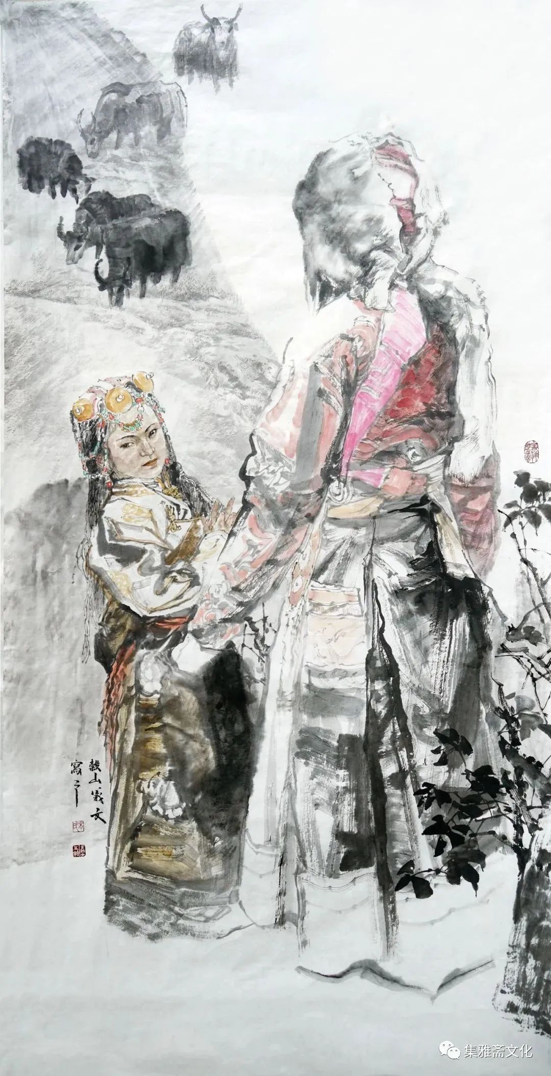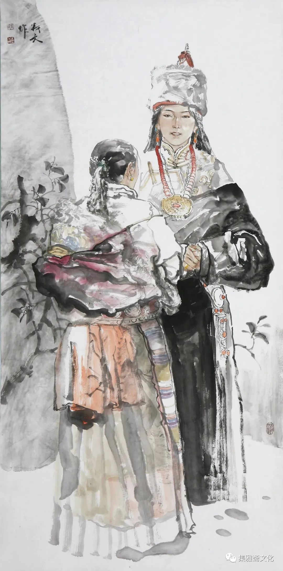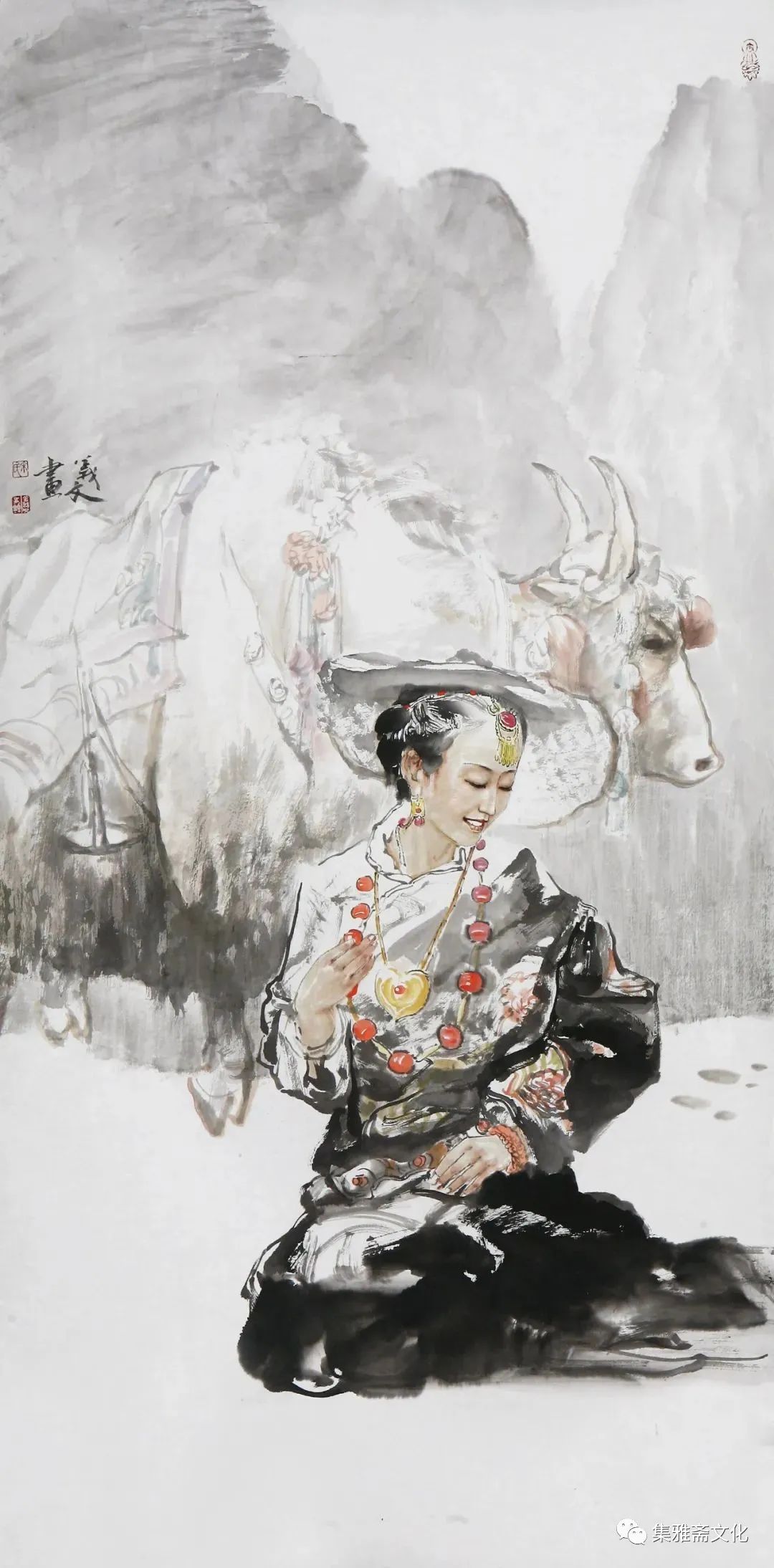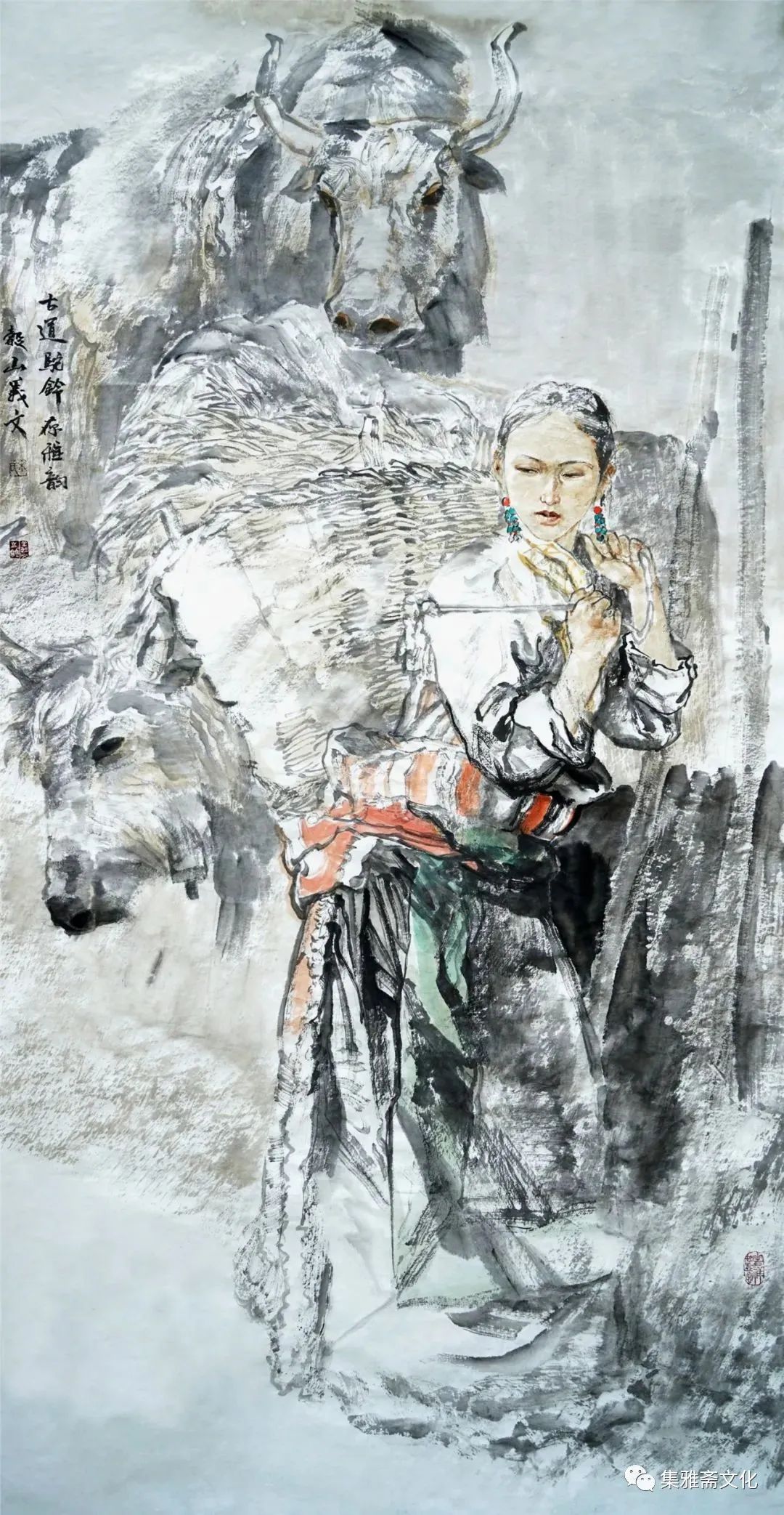宋义文在人物画史的研究与梳理中,把握了以线为主的中国人物画要领,吸取前人经验的同时,又借鉴了当代名家的创作理念和笔墨技巧,卢沉、周思聪、刘大为、任惠中等都给了他极大的影响和教诲。他的艺术在不经意间发生了蜕变,更贴近了艺术规律与艺术本质。