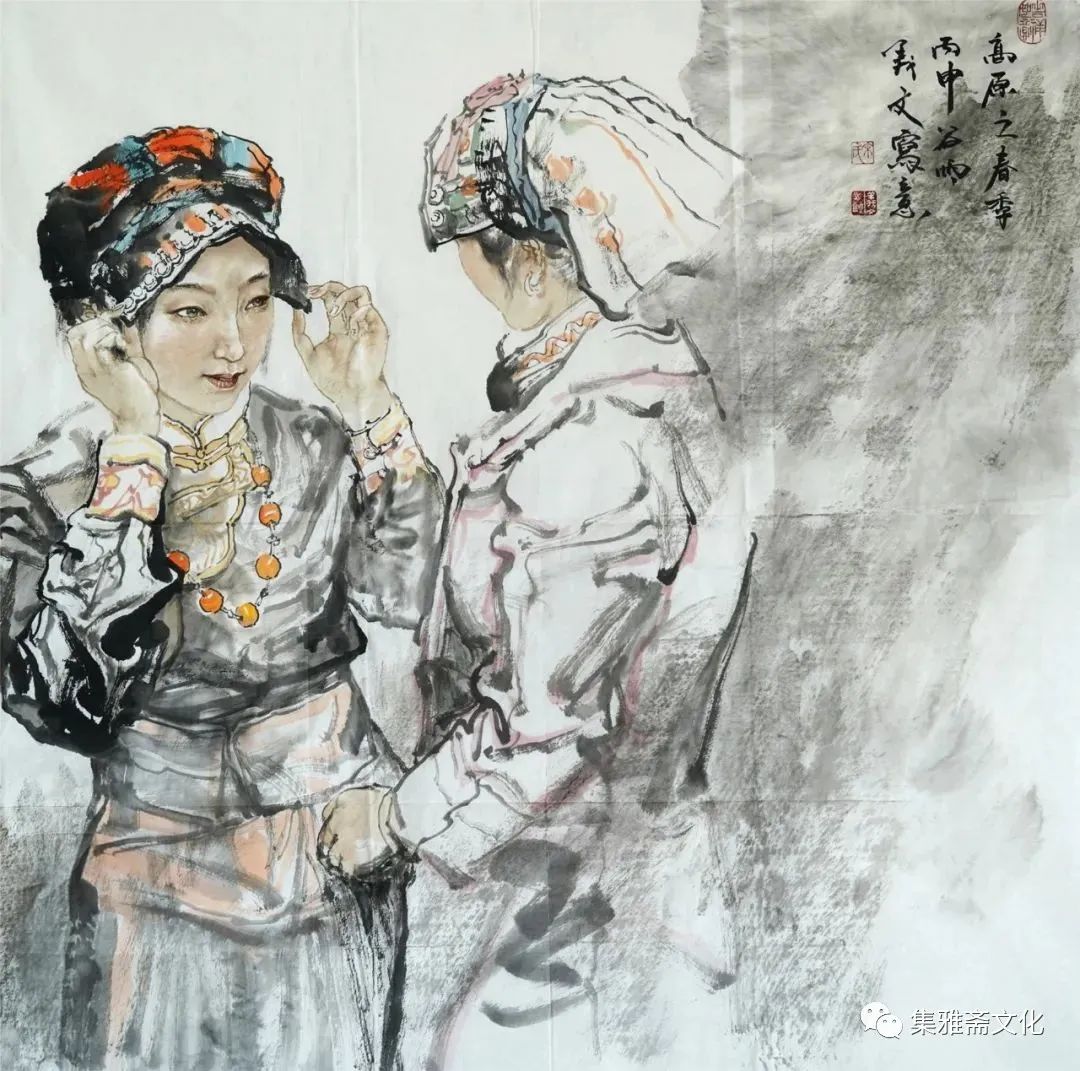 从工笔画到写意,这是一个很大的艺术跨度。在这里,我们看到宋义文在观念上、方法上,乃至技法上的巨变;显然,他完成了从“工画如楷书”到“写意如草圣”的转变,他笔下的人物在干湿浓淡与繁简疏密中,显现出“神似”的韵致和魅力。