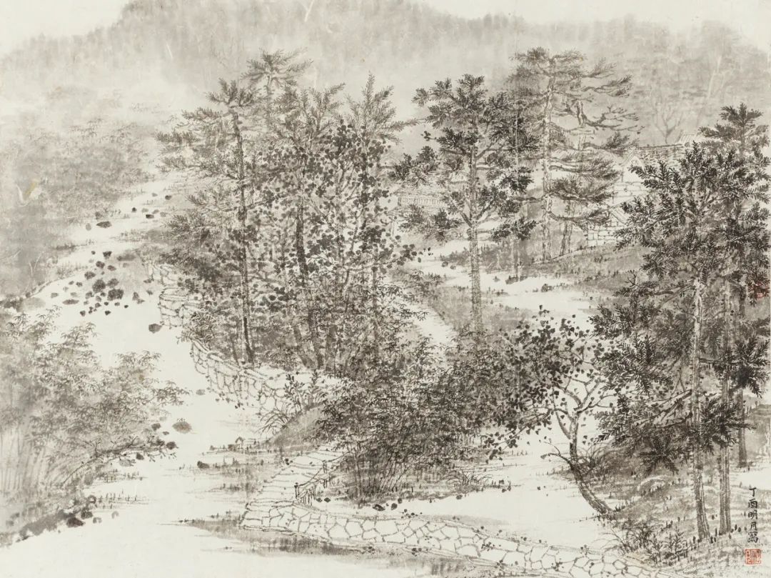 山水画的修炼是需要人生不断积累的阅历与学养来支撑的,陈明月还很年轻,我认为在她的作品现有基础之上,她还有很长的修炼之路要走,但我可以肯定的是,她的作品一定会随着岁月的积淀变得更加的厚重,最终完整形成自己温柔敦厚不失锋芒的绘画特色。