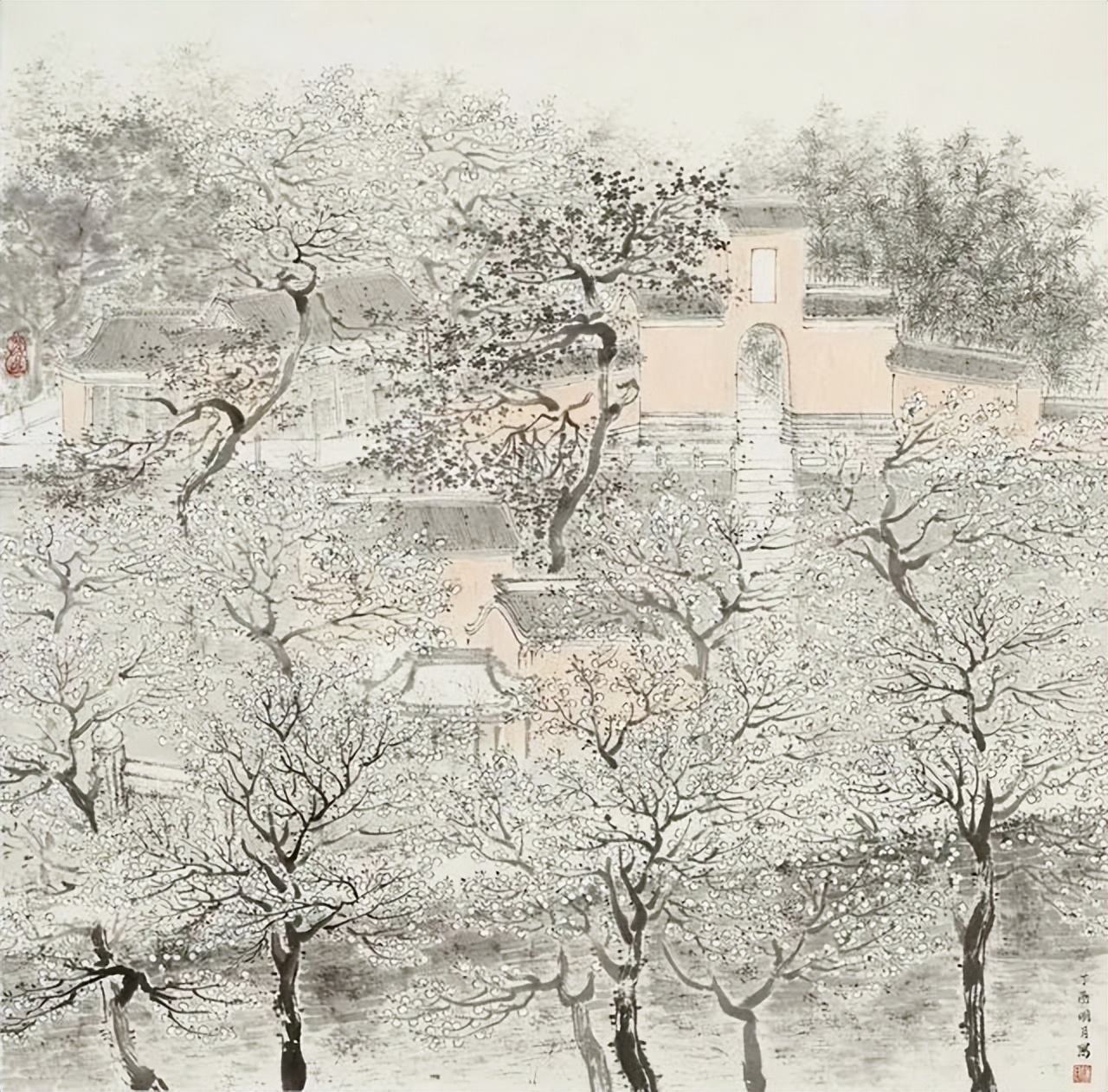 作为90后的年轻中国画家,陈明月的作品中有着少见的安静与稳重,许是因为她常年浸润于六朝古都金陵的山水天地之间,受到金陵八家和新金陵画派潜移默化的影响,使得她能够深入扎实的修养自己的中国画传统技法,并在自己的创作中较为灵活自如的创新运用之。
