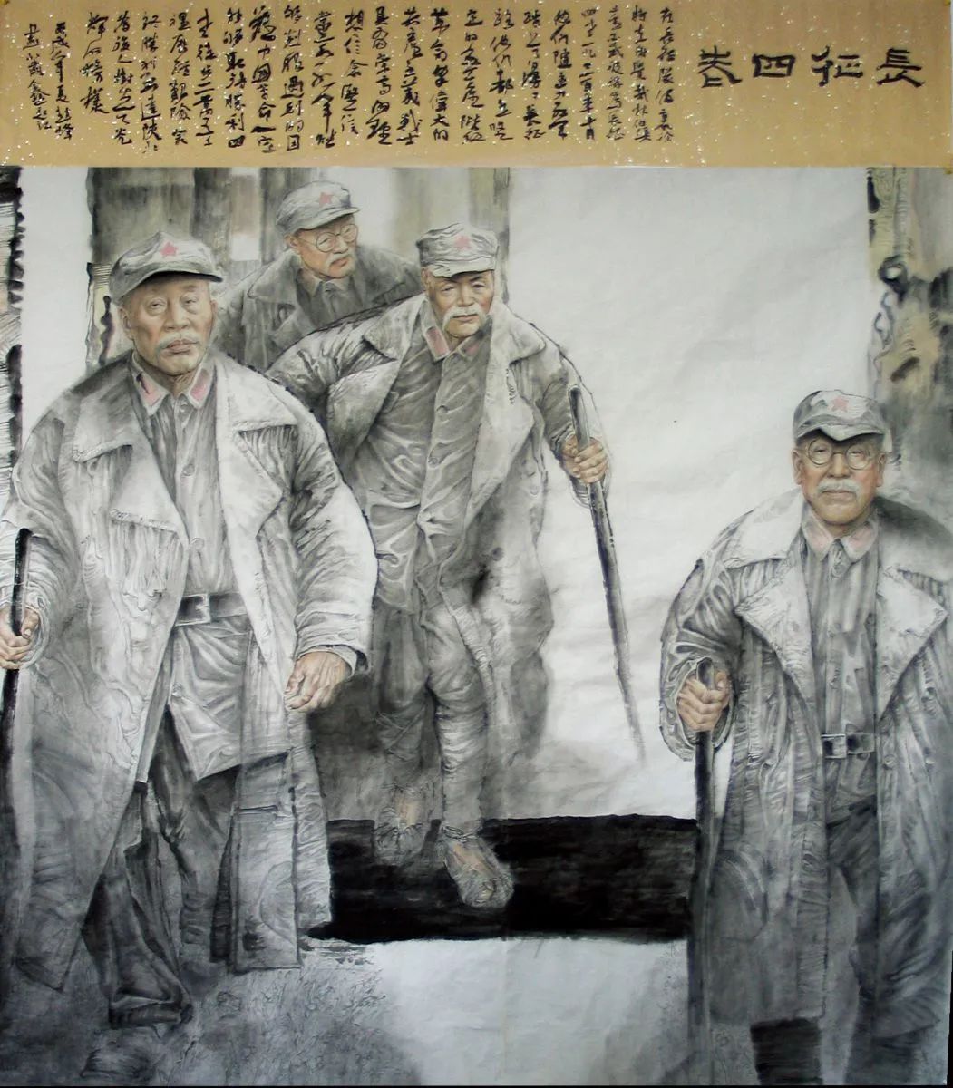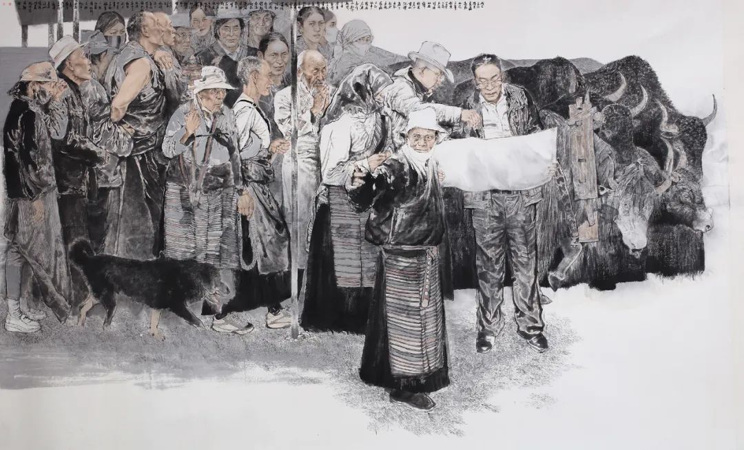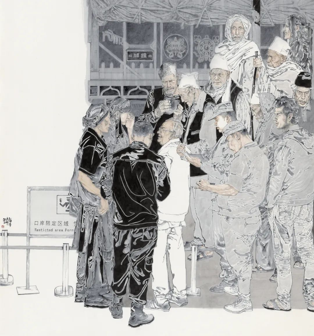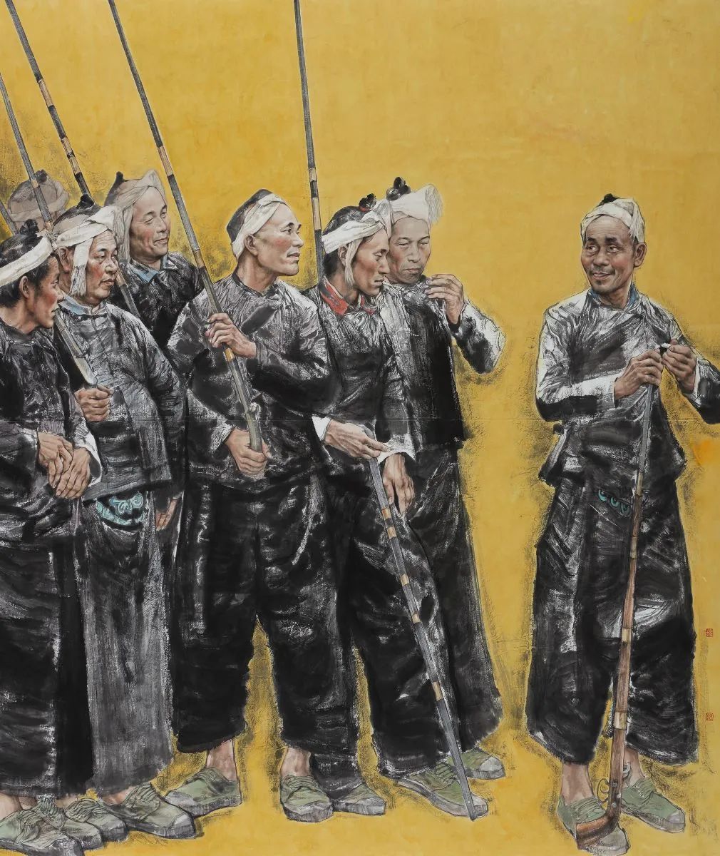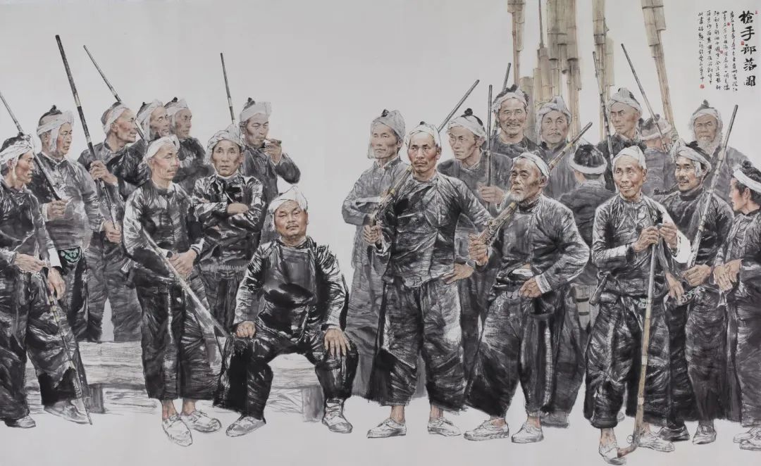 记得他在一年级下学期,就已经开始在画室的墙上裱上厚厚的宣纸,画起了四米多长的创作,成熟的人物造型和画面组合已经让我无法想象,那是一个刚入校门一年不到的学生所为,有一种“后生可畏”的气势。