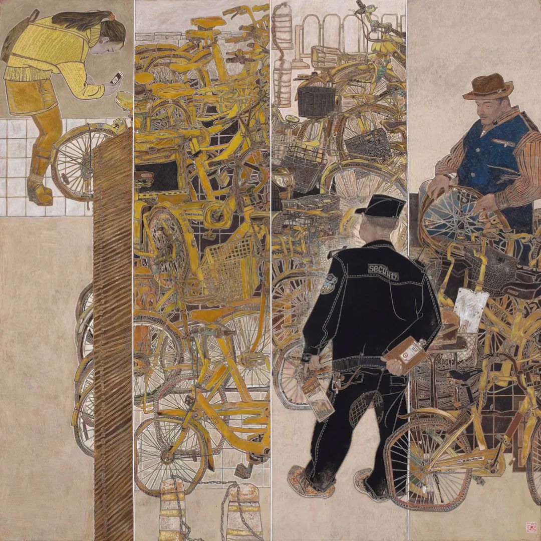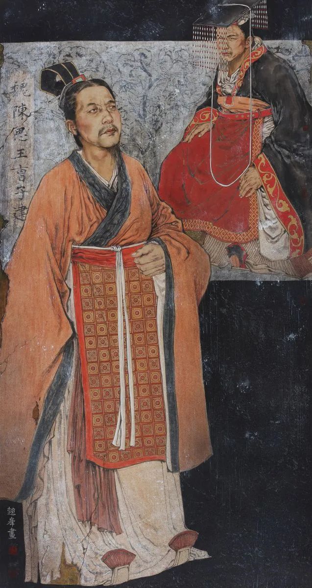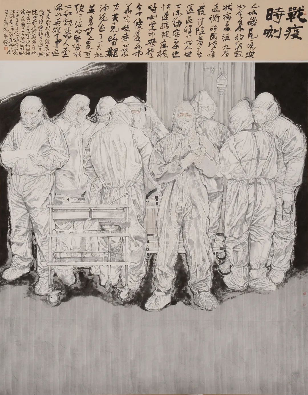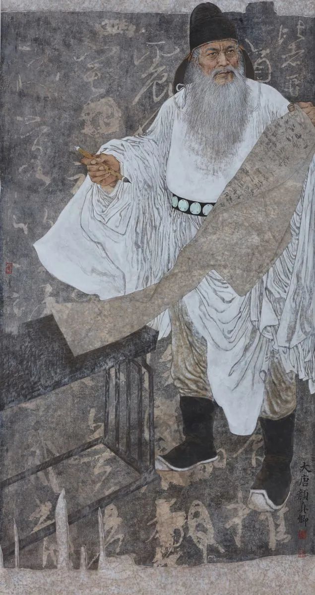 记得他在一年级下学期,就已经开始在画室的墙上裱上厚厚的宣纸,画起了四米多长的创作,成熟的人物造型和画面组合已经让我无法想象,那是一个刚入校门一年不到的学生所为,有一种“后生可畏”的气势。