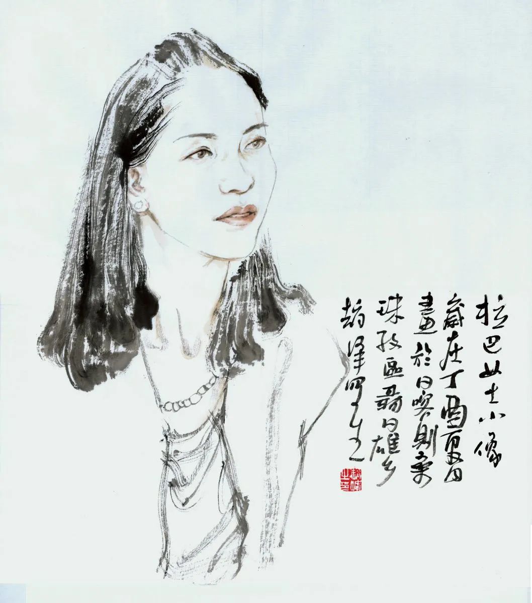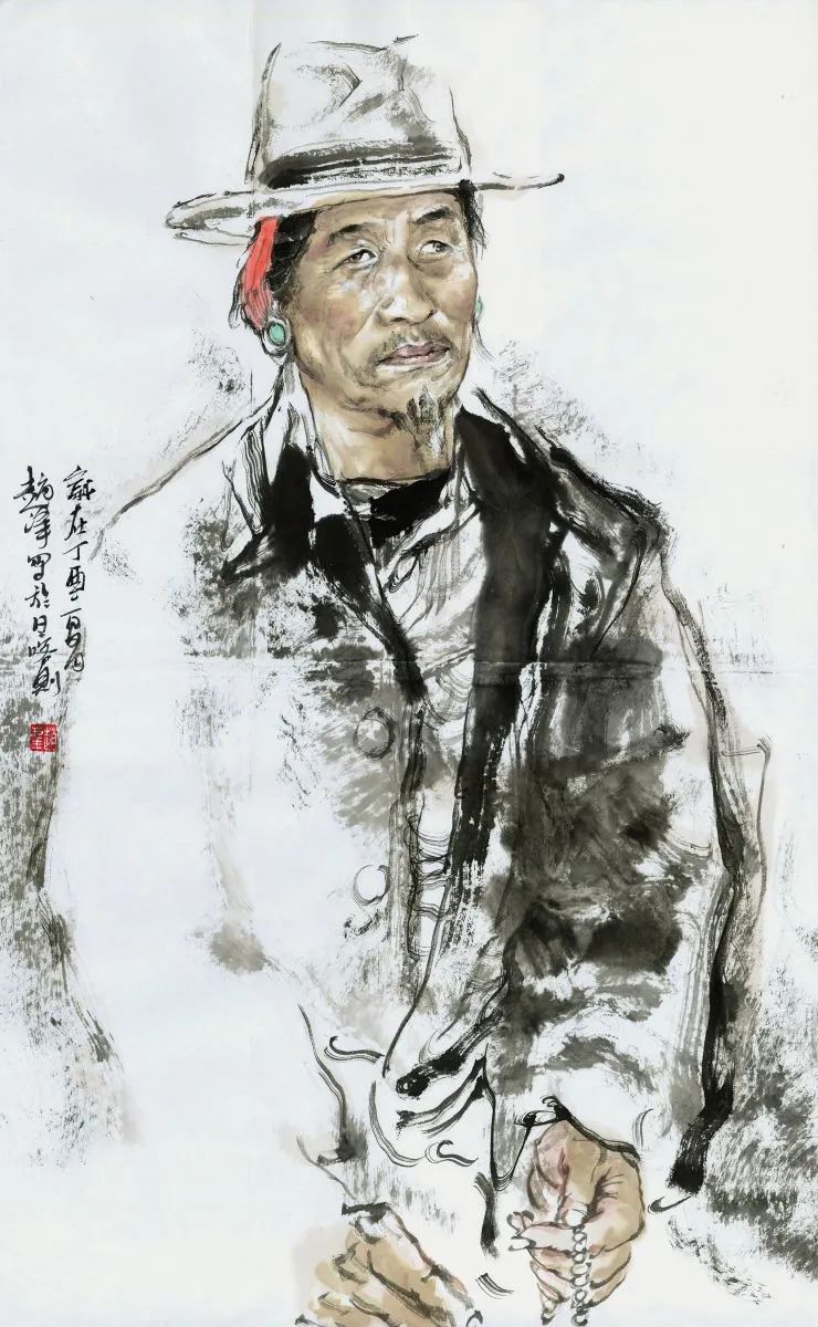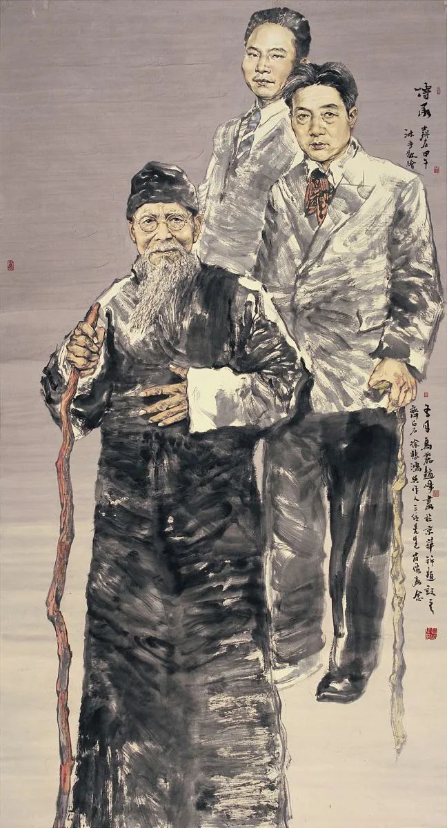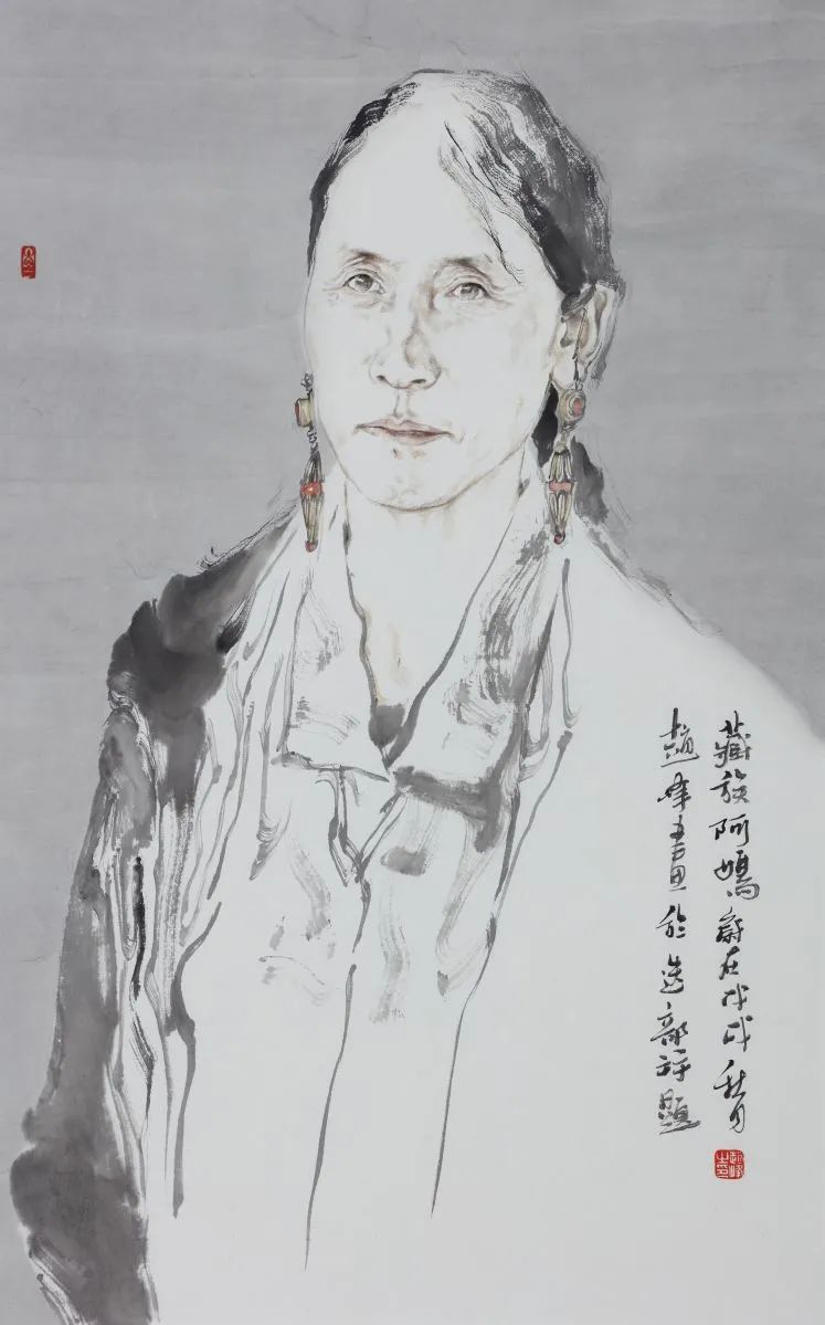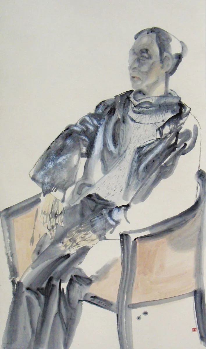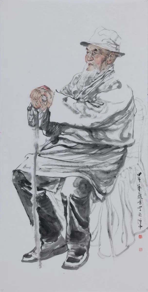 从人物的表现上来看,他笔下的人物形象既有应物象形的写实性,又与传统人物画表现中形象的程式化与假定性拉开的距离,更有效的突出人物形象的独特品格与神情,在控制中有潇洒,在飞动中不失严谨。又实现了造型感与笔墨趣味的统一。