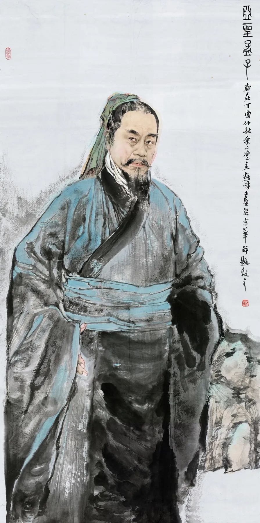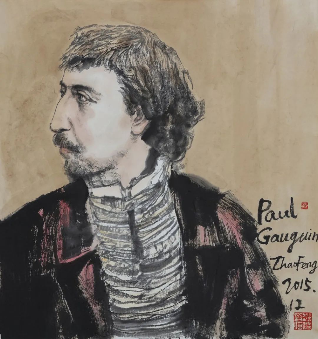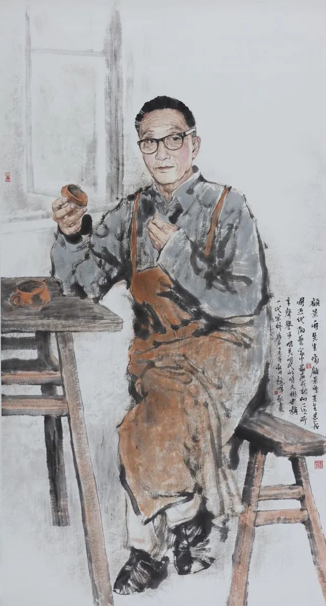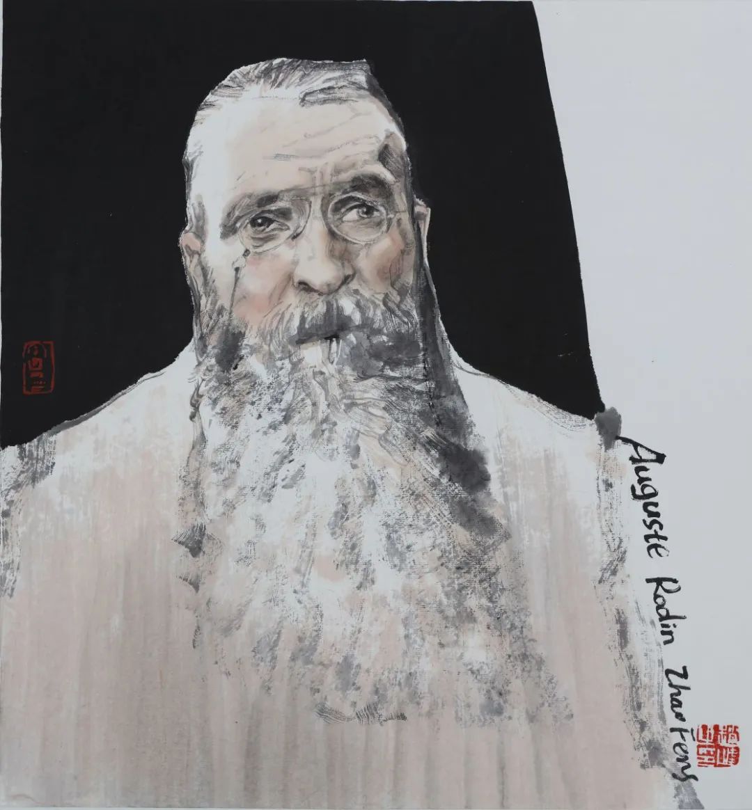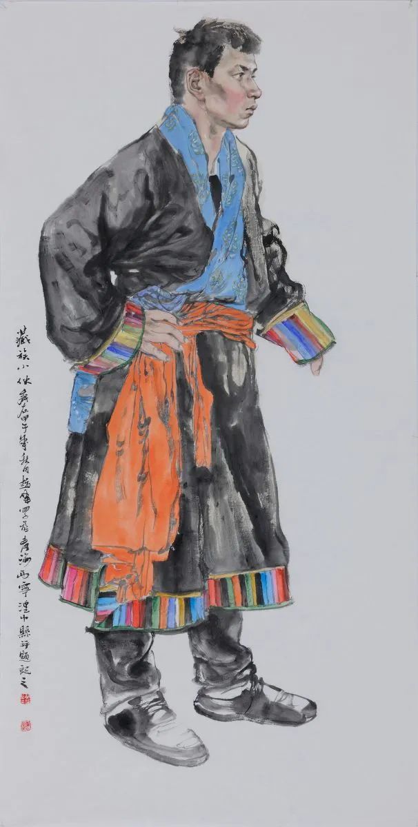 从人物的表现上来看,他笔下的人物形象既有应物象形的写实性,又与传统人物画表现中形象的程式化与假定性拉开的距离,更有效的突出人物形象的独特品格与神情,在控制中有潇洒,在飞动中不失严谨。又实现了造型感与笔墨趣味的统一。