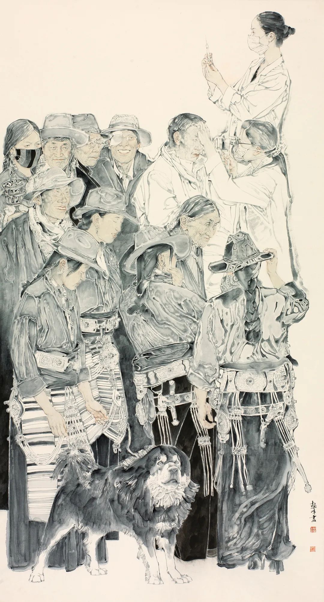 赵峰是一位地道的科班出身的画家。他的人物画作品,有一种扑面而来的气息是——在作品的意向之间、在笔墨之间、在整体氛围中,都充盈着现实的人文关怀,处处流露出画家对现实生活的由衷感受和鲜活发现,其作品因而焕发着朴素、单纯、欢乐与淡定的情思。