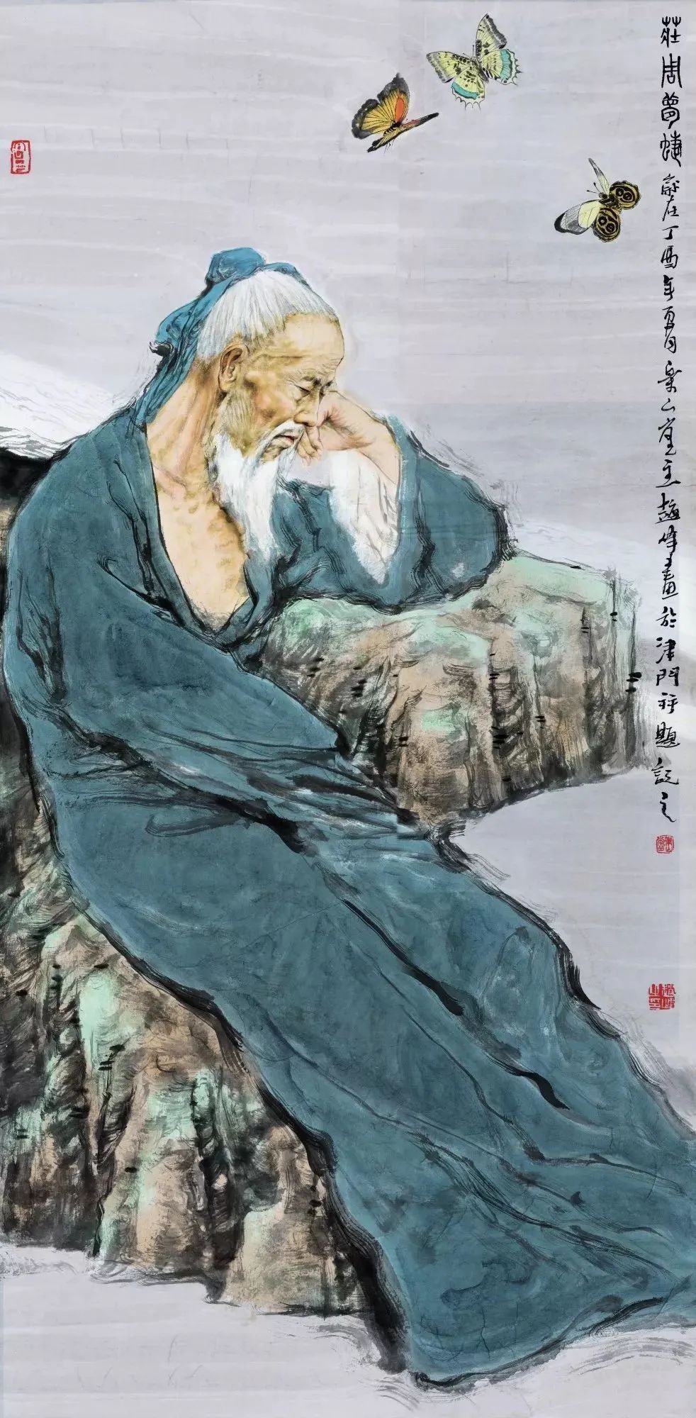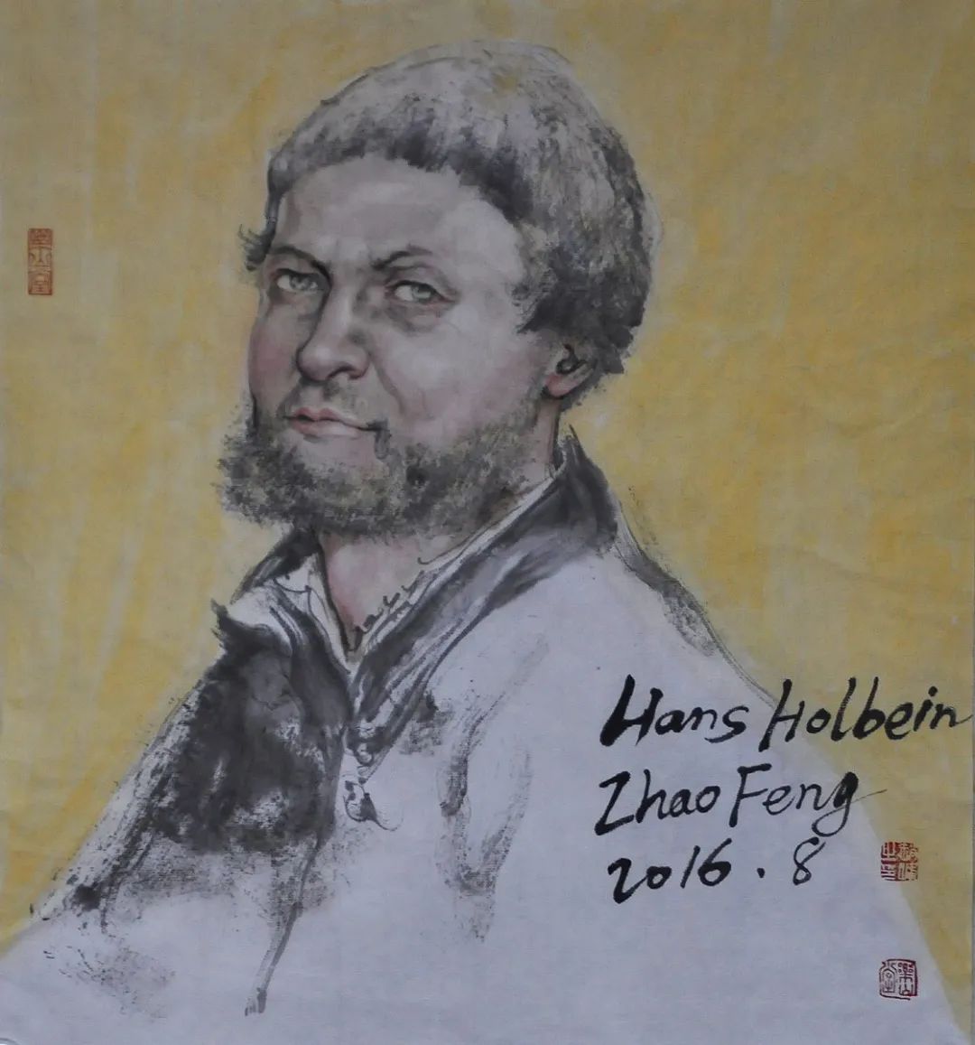 赵峰这些年在社会上历练的十分成熟,由一个大男孩变为一个大男人,一个两个孩子的父亲。变得持重老成,但是那种阳光下的朝气却没有变,他的人物画已经由工笔转为写意,而且写意人物画的真不错。对笔性的长短、快慢节奏的掌控和对笔墨浓淡干湿的理解,竟十分的自如。