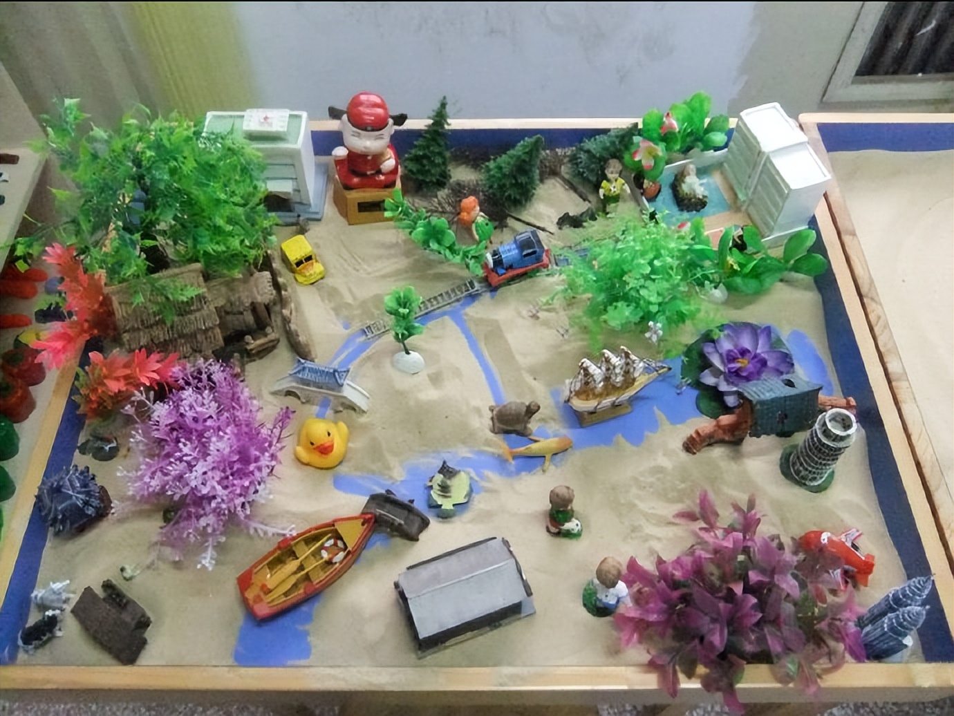 沙盘是“一座心灵花园”,是一个介于个体内隐生活和外显生活的“中间地带”,是一片自由和空白的区域,是一个展示心灵生活的容器,来访者的心灵世界在这里得以逐步呈现和自我揭示。来访者可以鲜活地洞察自己,创造自己的世界,改造现存世界。
