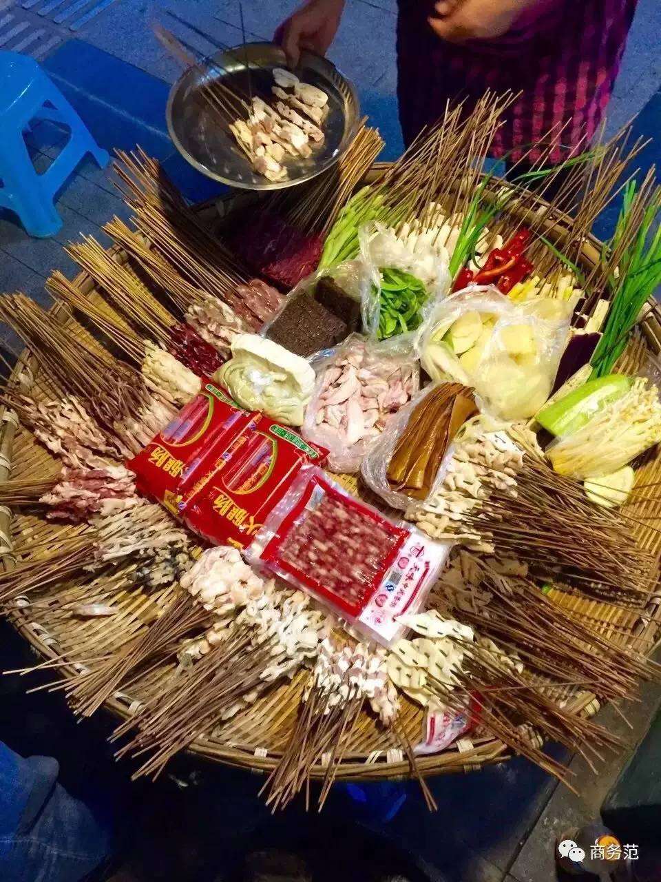四川宜宾夜宵的头牌是烧烤,种类极大丰富,范主老家的姐妹一上图把小伙伴都震惊了:这一盘可供挑选的“大丰收”,有肥肠,鸭舌,牛肉,壮肉,五花肉,鼻筋,腰花,鸡肝,粉肠,鸡脚筋,黄喉,毛肚,羊肉,螺丝肉,鸡皮等等。