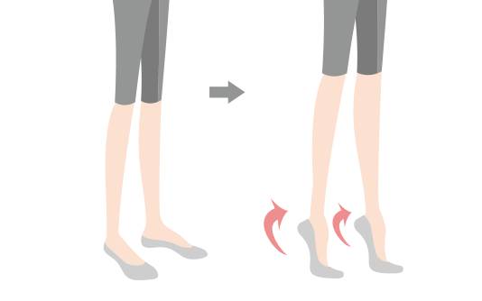 1.站立时,踮起脚尖,让脚面离地,用前脚掌支撑一会。这样有助于让双腿线条变得紧实↓