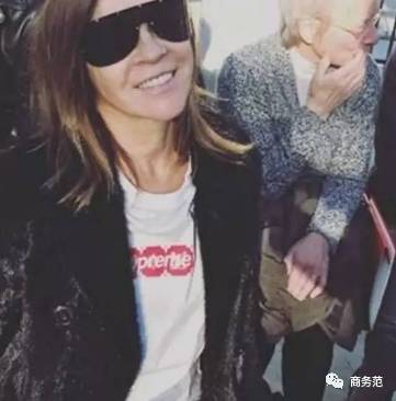 另外就是钟爱着白T的他们,法国《VOGUE》的主编Carine Roitfeld在秋冬秀场上已经穿上了这款联名白T↓