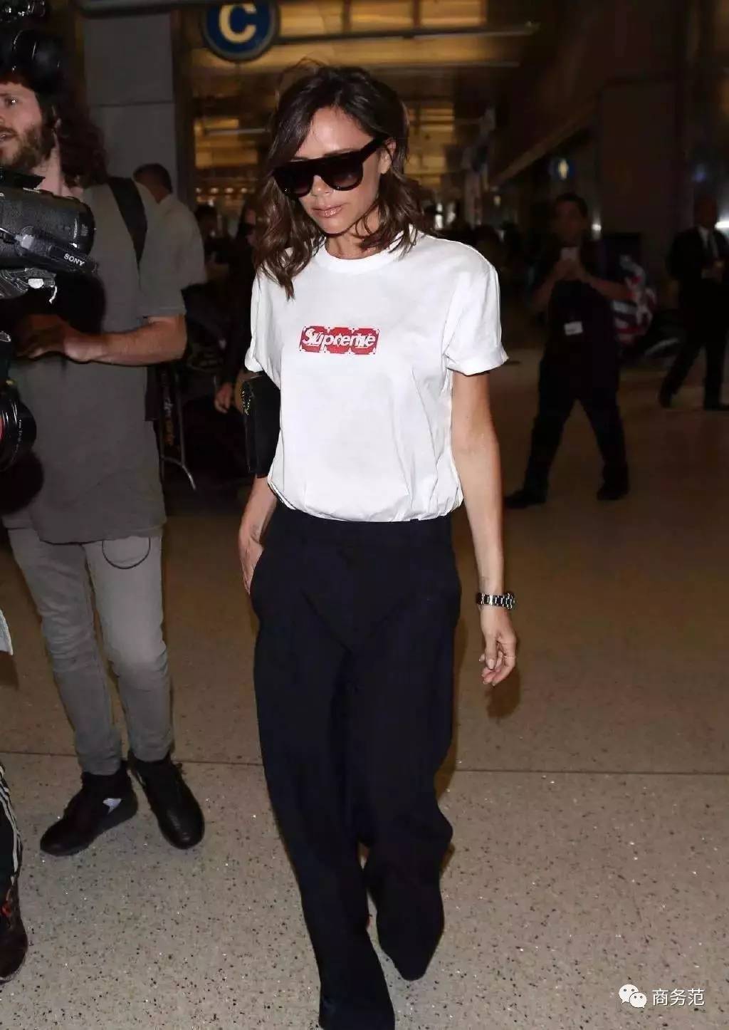贝嫂简单的白T黑裤搭配↓