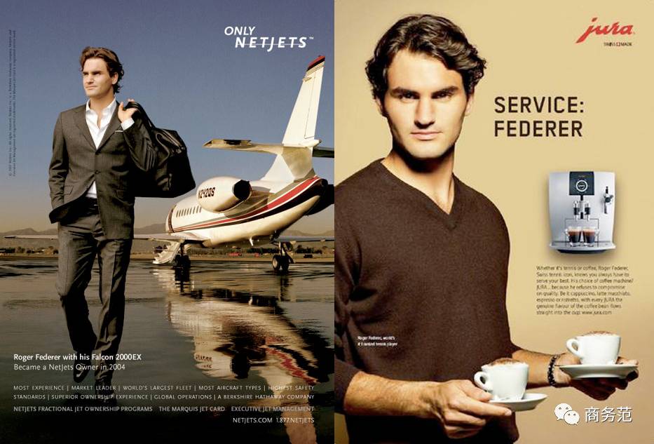 除此之外,费德勒还和瑞士瑞信银行、优瑞咖啡机、瑞士莲、利捷公务航空公司、吉列剃须刀等有商业合作,现在又创造了新纪录,想必今后的代言会更多~