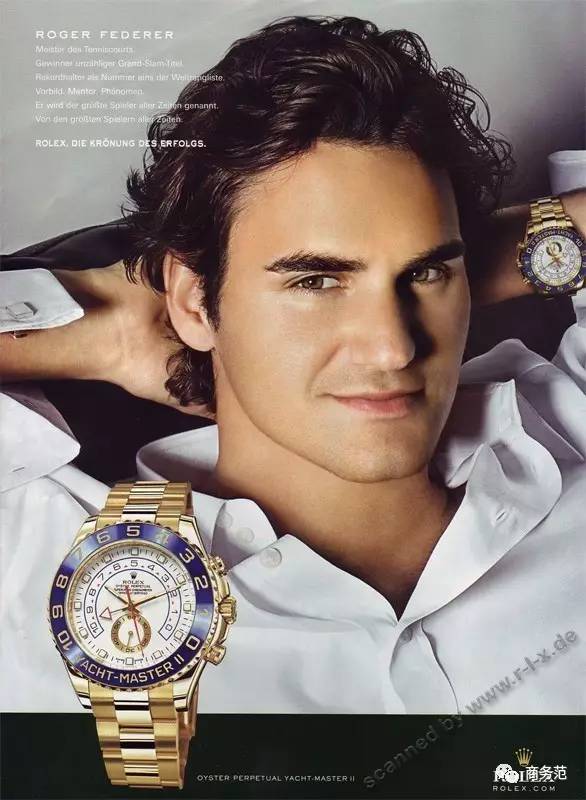 费德勒也被称为网坛的詹姆斯·邦德,跟劳力士的联系也是非常紧密,2006年开始代言劳力士,到现在,也成为了费德勒的个人符号。