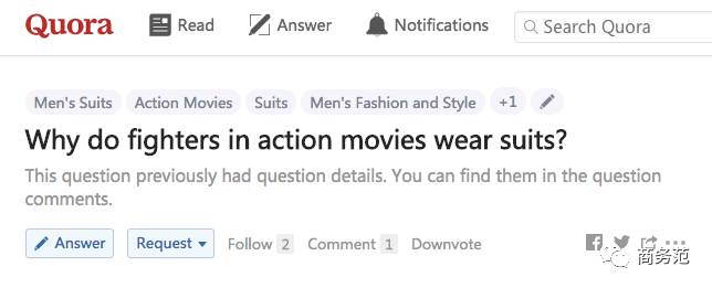 想起之前Quora上看到有人提过一个问题:为什么动作电影里的人都爱穿西装打架?