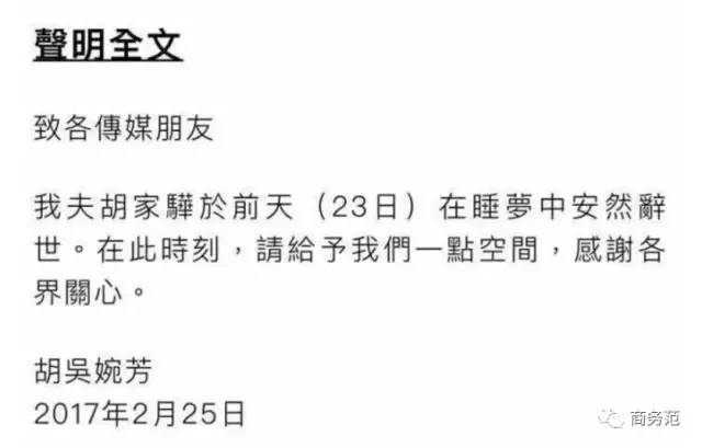 只是今年2月,吴婉芳突然发表声明称丈夫在睡梦中安然辞世,享年57岁,令人唏嘘不已。