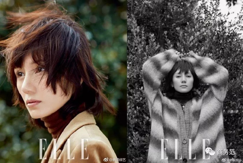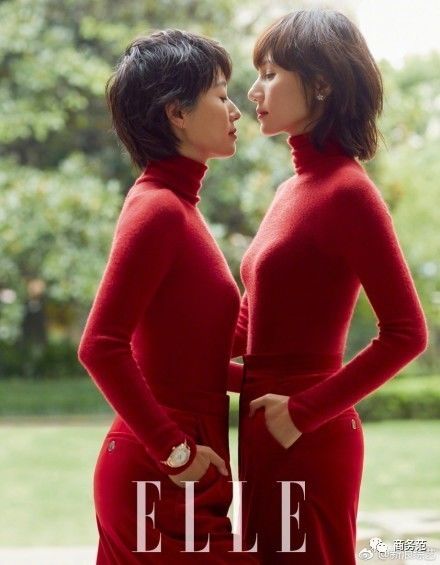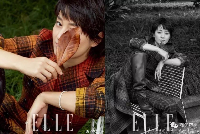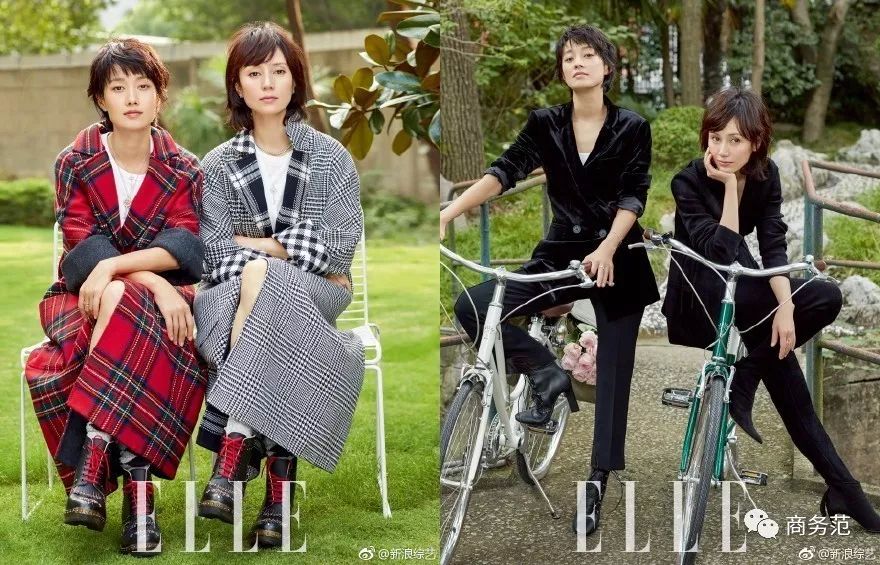 再看二人的“合体封面照”,尝试了不同的造型。有格纹大衣的英伦风,黑色西装配高跟的干练、帅气风,各自散发着自己独有的味道。