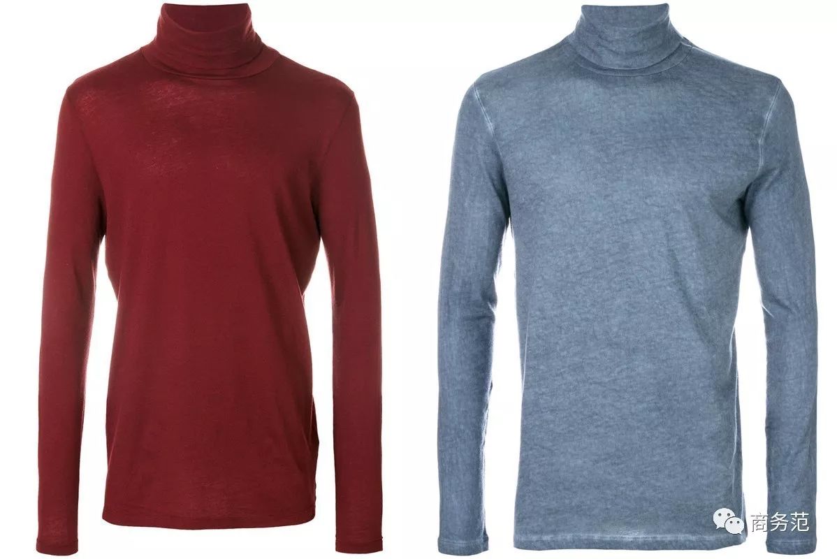 当然,个别款式也有几个“另类色”。左边这款红色,神似马伊琍、袁泉的“情侣高领秋衣”。右边是比较流行的雾霾蓝色,适合搭配浅色外套。Btw,这些高领打底衫的材质基本是由:85%棉 15%羊绒混合制成。