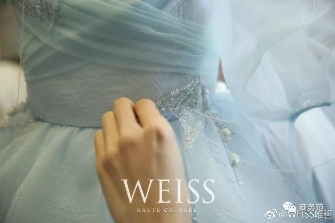 这次的公主裙,也让范主眼前一亮。她穿的是“唯誓WEISS”高定系列铃兰公主裙的mini版,法式刺绣和烫花工艺打造的立体铃兰,栩栩如生。这也是设计师五月的最新作品,范主还在她最近在三里屯CHAO酒店的展览上,看到了甜馨这条裙子的大人版。