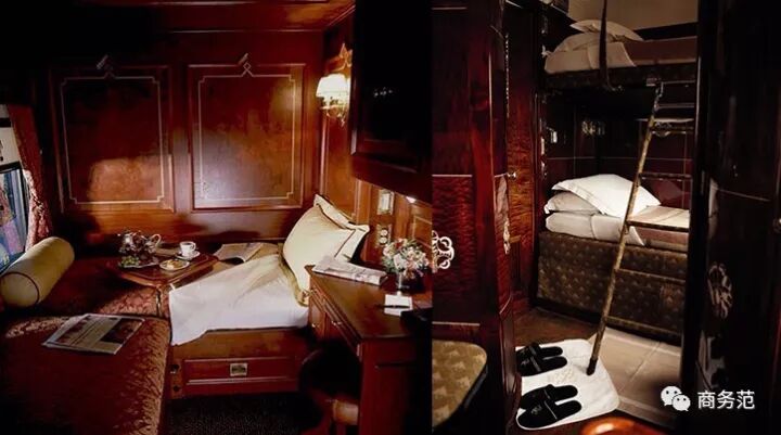东方快车的包厢分为单人间和双人间,其中双人间是上下铺位,同样有着一等车厢和二等车厢。