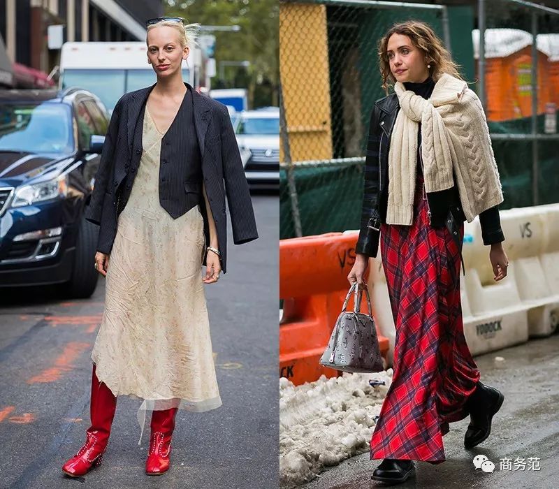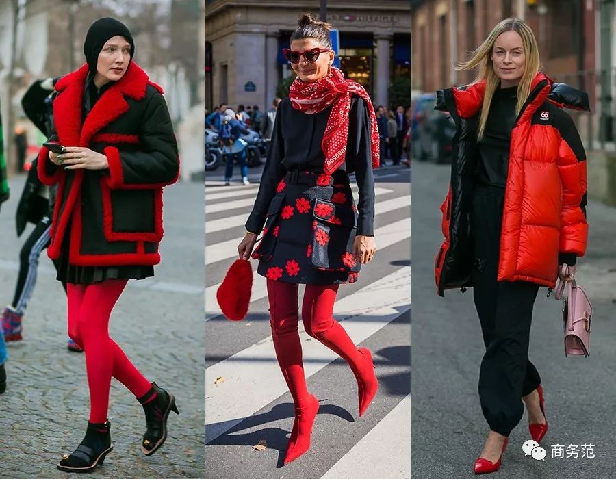 范主发现街拍达人都在玩“红 黑 米”的配色法:三色均分,让米色中和浓重的红、黑,整体看上去有亮点也可以喘息。