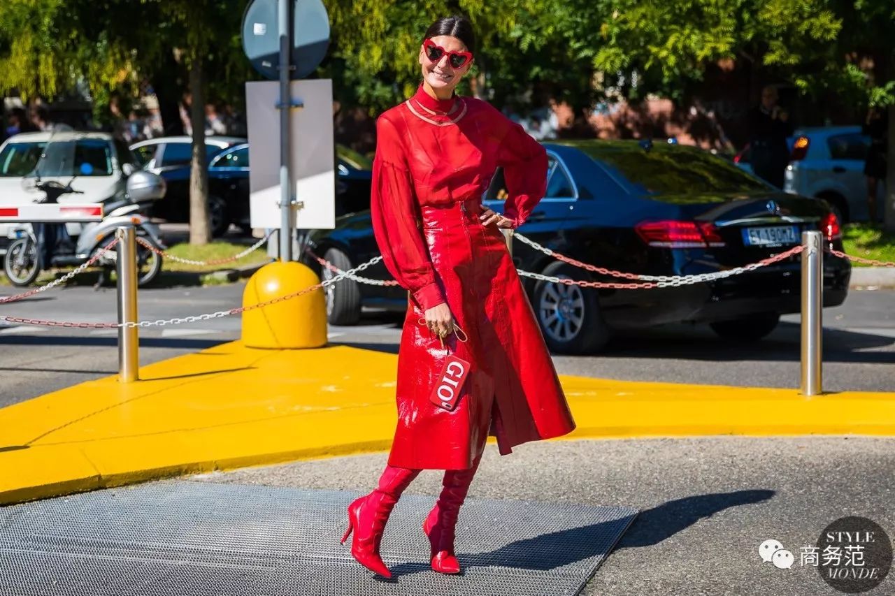 但是饱和度高又格外挑人的红色对普通人其实并不友好,像街怕达人这样从裙子到鞋子再到太阳镜、手机壳都“红衣炮弹”全副武装,对普通人的借鉴度非常低。