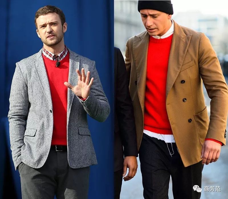 很多欧美男士还喜欢内搭红色,艳丽的开司米圆领衫向来是衬衫最好的朋友~