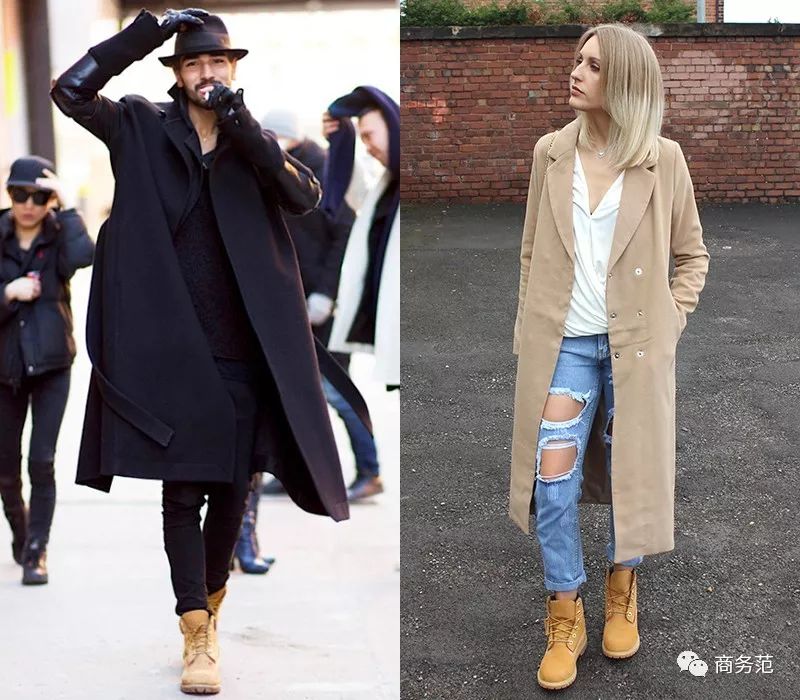 至于新年大衣配什么鞋,最简单的选择就是Timberland的大黄靴。