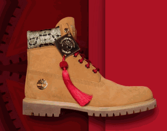 最近,范主刚刚提到的大黄靴品牌Timberland,就把剪纸元素用在了最新的狗年限定系列设计中。