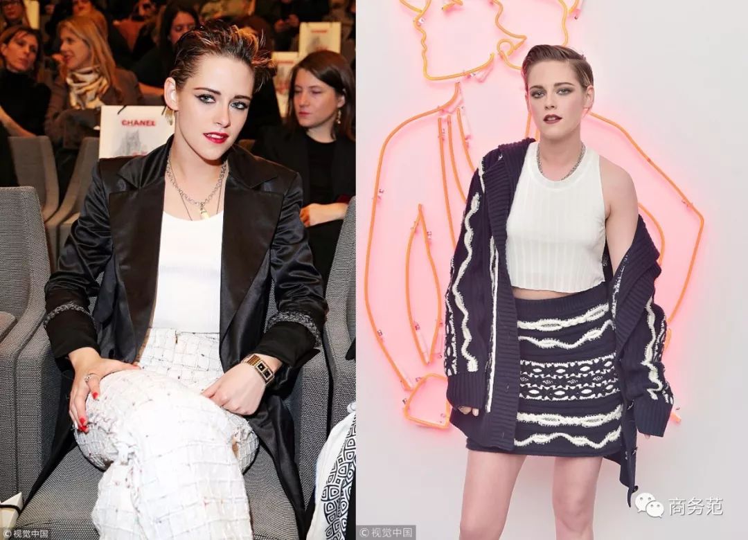 所以,东西方的帅气女星都很钟爱用黑白两色凹造型,比如掰弯无数妹子的Kristen Stewart,出席活动时,最常用的就是黑白配↓