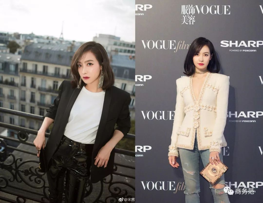 另外,休闲风也是不错的选择,既能体现帅气爽朗,又显得年轻有活力,宋茜就深谙此法↓
