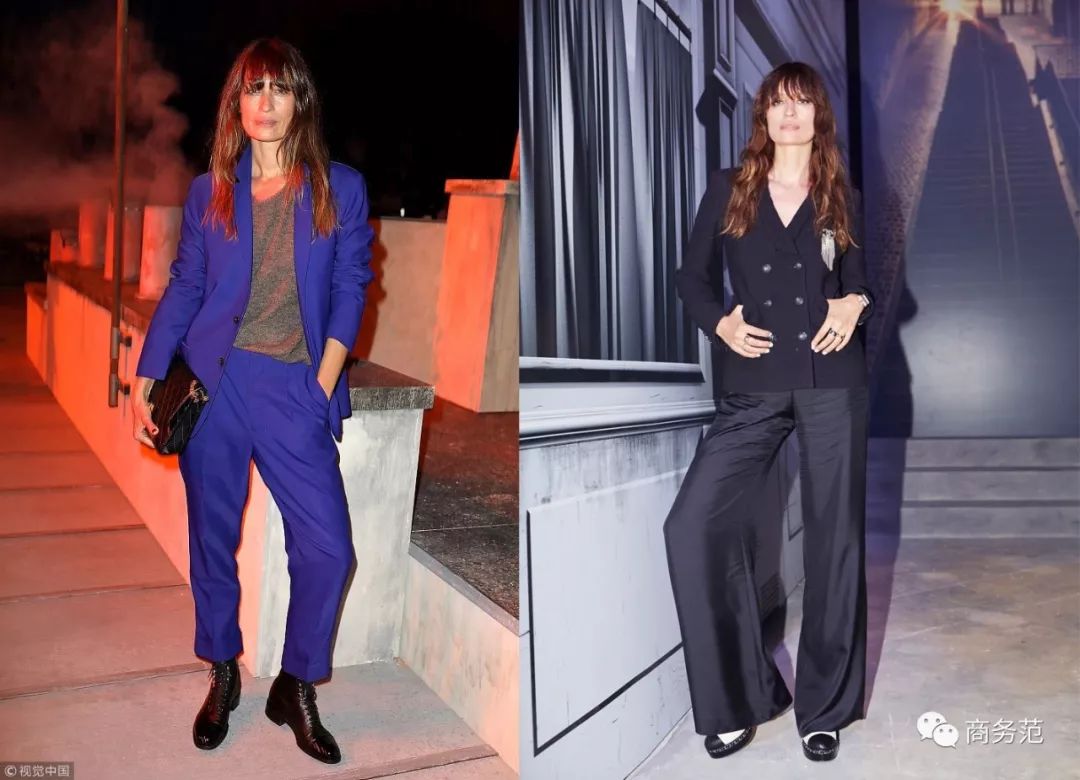 西装的硬朗轮廓可以中和女性的柔美线条,法国时尚icon Caroline de Maigret就经常这么穿,搭配蓬松的卷发,和手插袋的pose,帅到飞起~