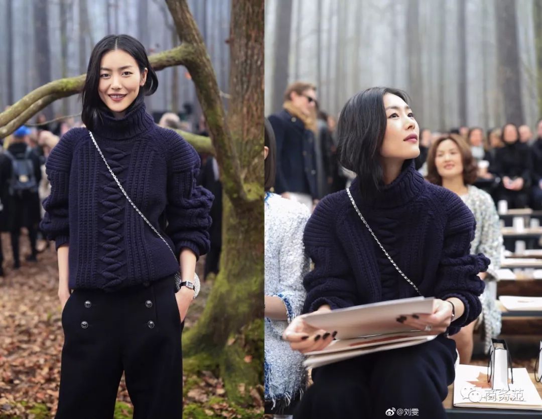 拍照的时候,相应可以选择硬朗的pose,比如大表姐最爱用的A字腿,手插袋↓