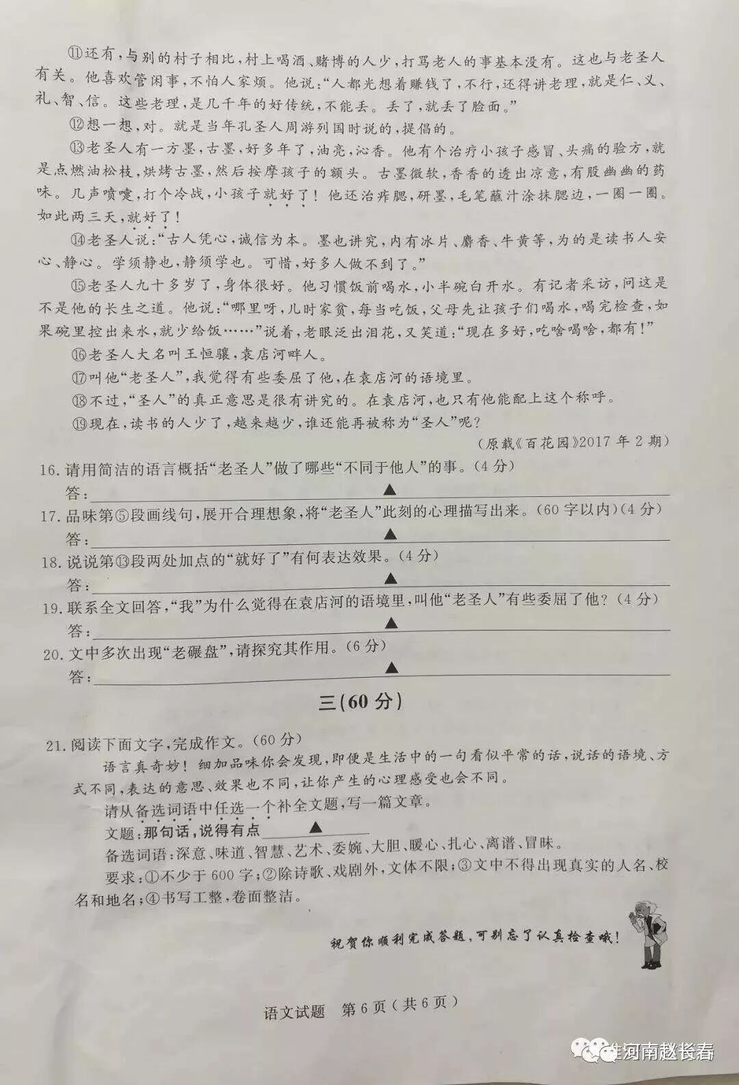 读完《老圣人》,请做题,22分。