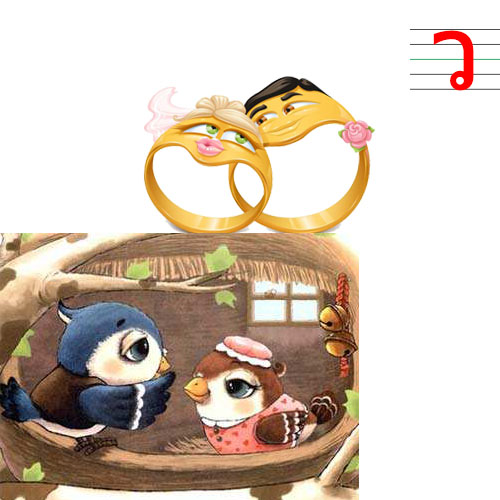 发音规则为 wo,跟“窝”的读音相似;形象记忆:小鸟拿着戒指在鸟窝边求婚。如下图所示:
