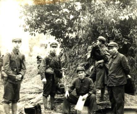 少将)站在康师长右手旁边的是陆军 149 师政委徐金堂(后任50军副政委);在师长右手旁边的是警卫员曾宪荣、余启长,在师长背后的是增配警卫员小朱。