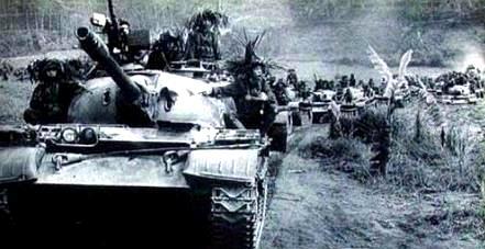 图为149师装甲部队奉命突破红河向越南纵深沙巴战区挺进
