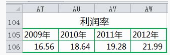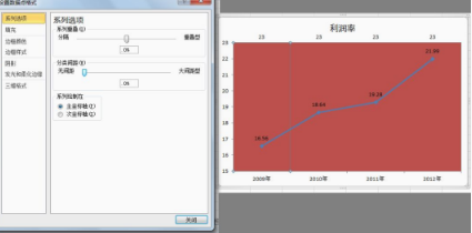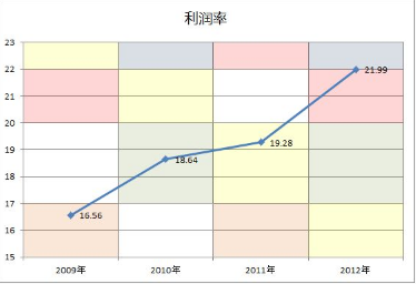 先准备按年,对绘图区设置颜色,由上图得知本例Y轴最大刻度为23,在原数据表格中添加一辅助系列数据,如下图所示: