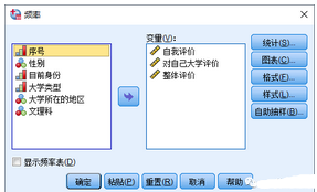 先通过【分析】-【描述统计】-【频率】菜单,查看数据的缺失情况,菜单面板如下,注意我们什么也不勾选。