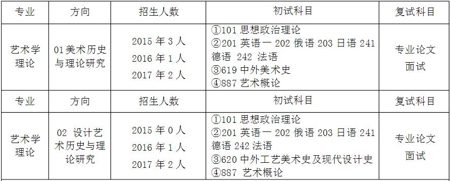 清华大学艺术学理论专业考研的报录比平均在10:1左右(竞争较激烈)清华美术学院艺术学理论专业共有2个研究方向,不同的研究方向专业课一的考试科目是不一样的,招生也是按方向报考,15年方向2就没有进行录取,3人全部都是方向1录取,16和17年都是平均录取。