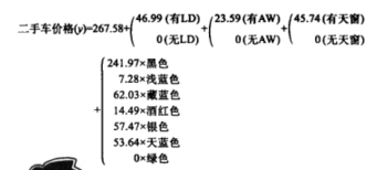 y=267.58+0+O+0+0+(-3.41)*65+6.99*0+86.30x3.5=347.98"