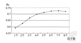 1、进行回归分析后,把表1的分析结果(1、2、3)代入回归方程,计算因子选择标准(Ru)为0.72l。