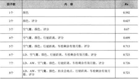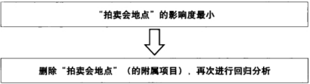 2、接着,进行因子分析,结果如图1所示。从图1可知。影响度绝对值最小的因于是“拍卖会地点”。因此,删除所有拍卖会地点的附属项目
