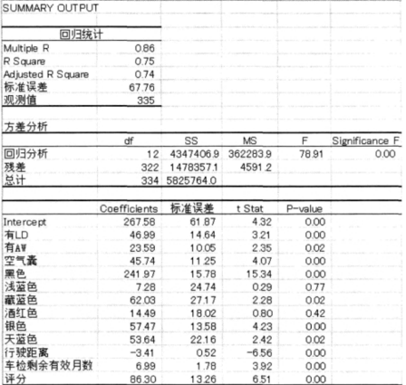 5、删除影响度数值最小的“AW”,再次进行回归分析。