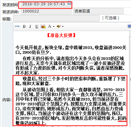 在昨天的分析里提到,今日会在2870-2933的区域多头继续形成反攻的概率达95%以上,今天如期上涨,并站稳了3000点,虽然在昨天预期里,没有达到我们预期的多头反击,但今天如期爆发,虽然比我们所判断的推迟了一天.但在操作上,我们是基本在昨天就加仓完毕,今得已暴涨.