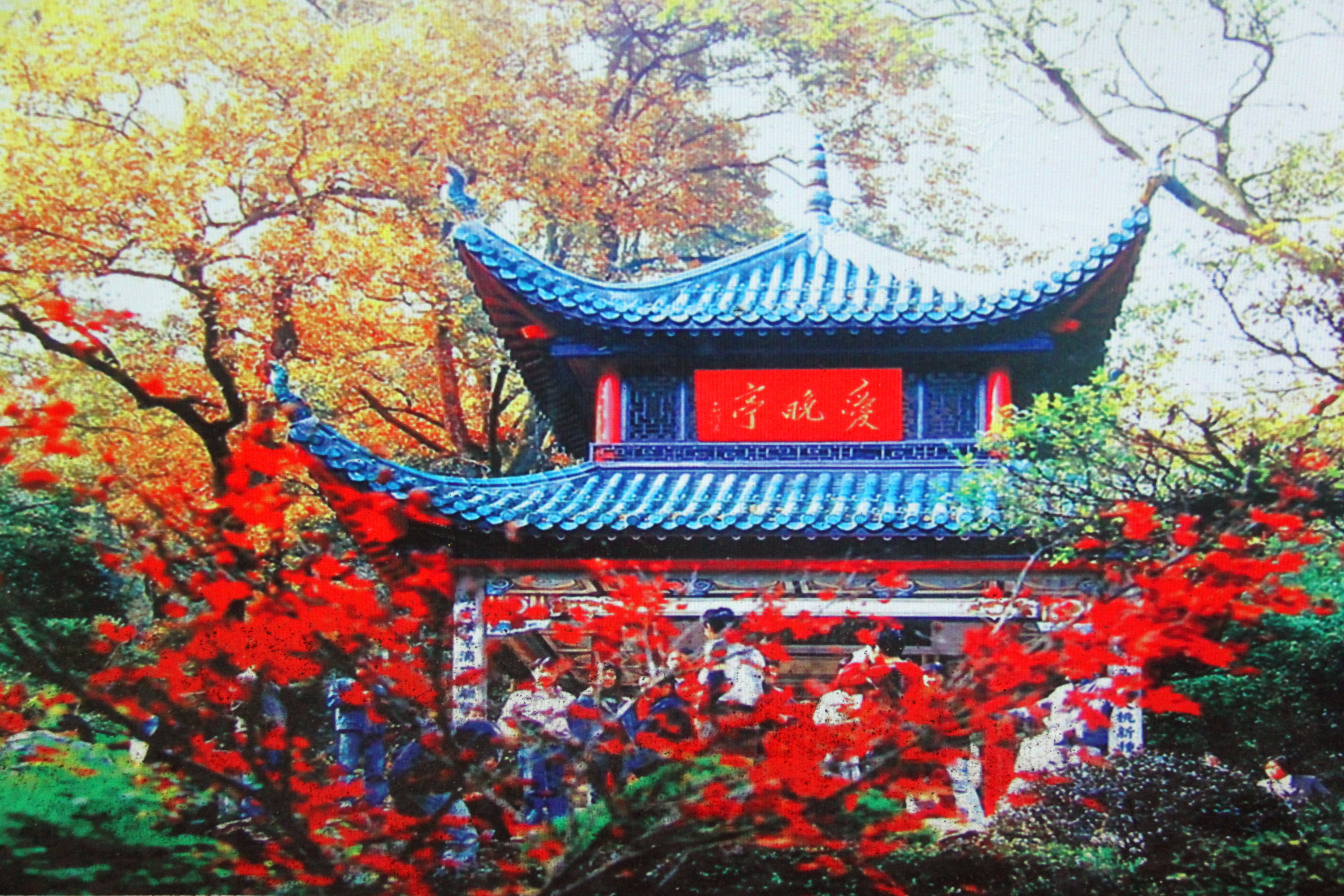 丛林披彩飞鸟落,灿红枫叶美景添。