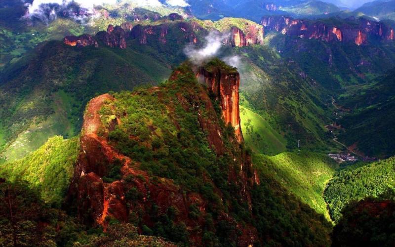 老君山金顶道教建筑群依托山顶建筑,主要包括老君庙、道德府、五母金殿、亮宝台、玉皇顶、钟鼓楼、南天门、朝阳洞、大道院、神道天桥、回廊等,全部采用明清皇家宫殿式建筑形式,特别是金殿、亮宝台、玉皇顶的三座金顶,成为老君山道观群的亮点。(黑蓝体字內容源于网络)